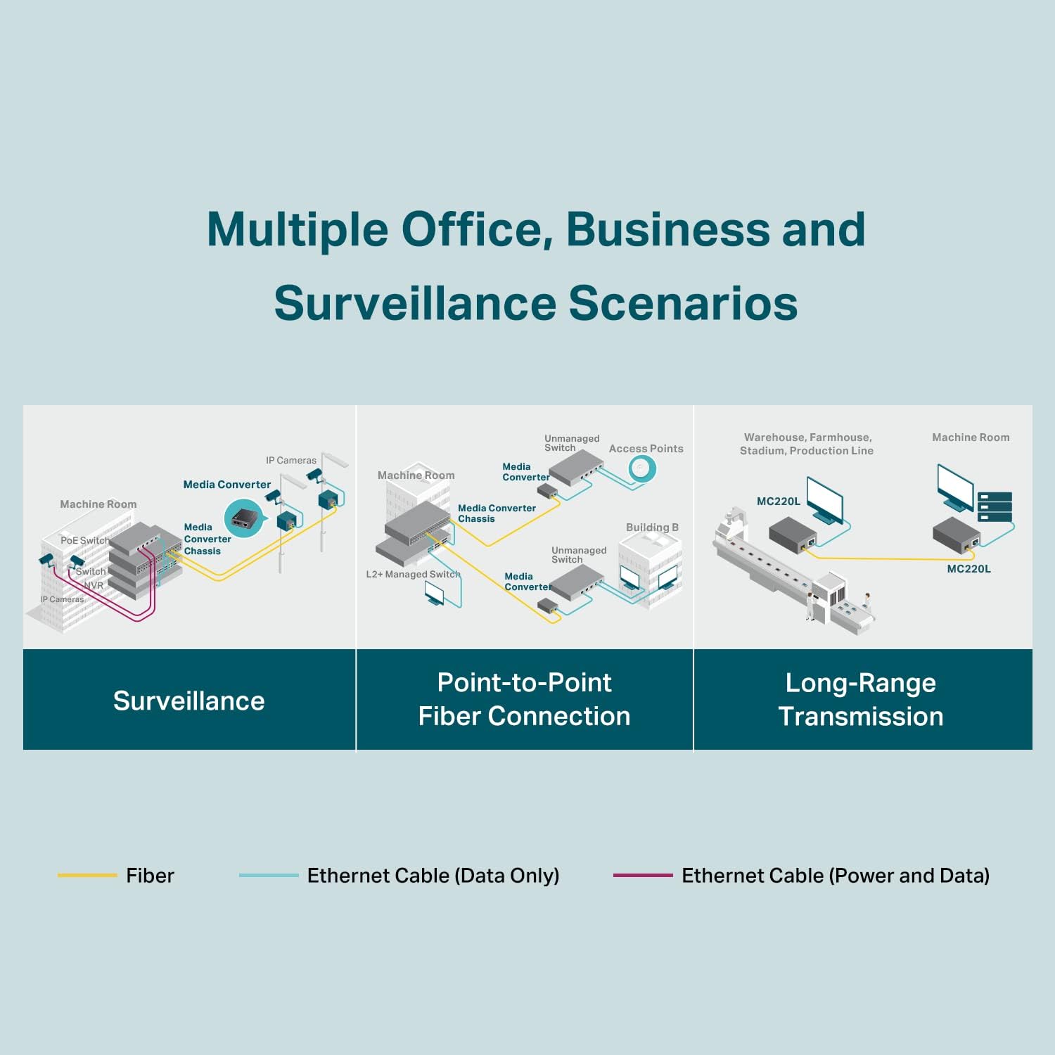 【Long-Range Transmission】When used with different types of SFP modules, the Hot-Swappable FX Port extends fiber distance up to 12.4miles (20km) for Single-Mode transmission and 1,800 feet (550m) for Multi-Mode transmission.