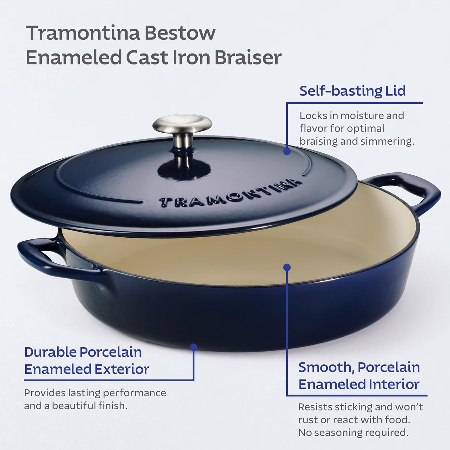 Tramontina Bestow Enameled Cast Iron Braiser Pan with Lid, 4-quart, Blue