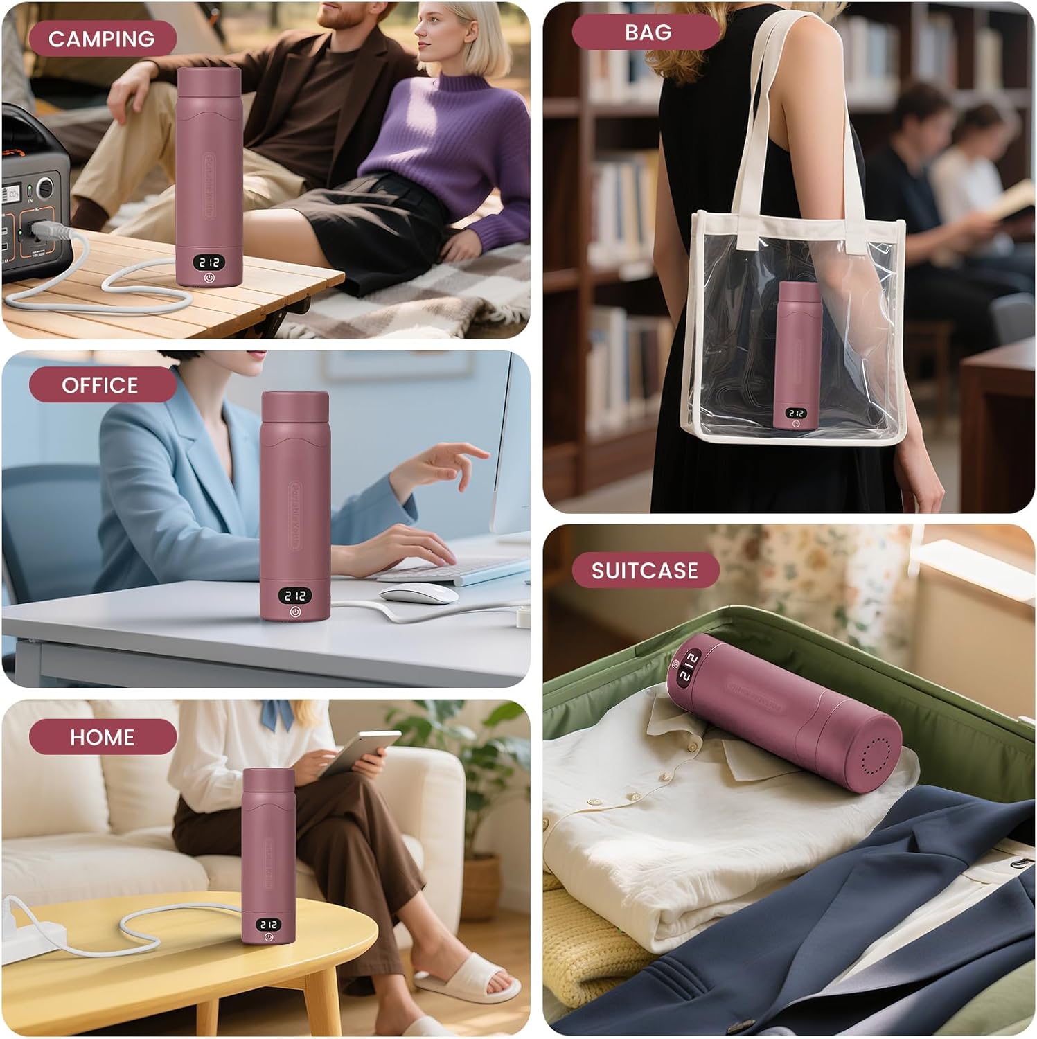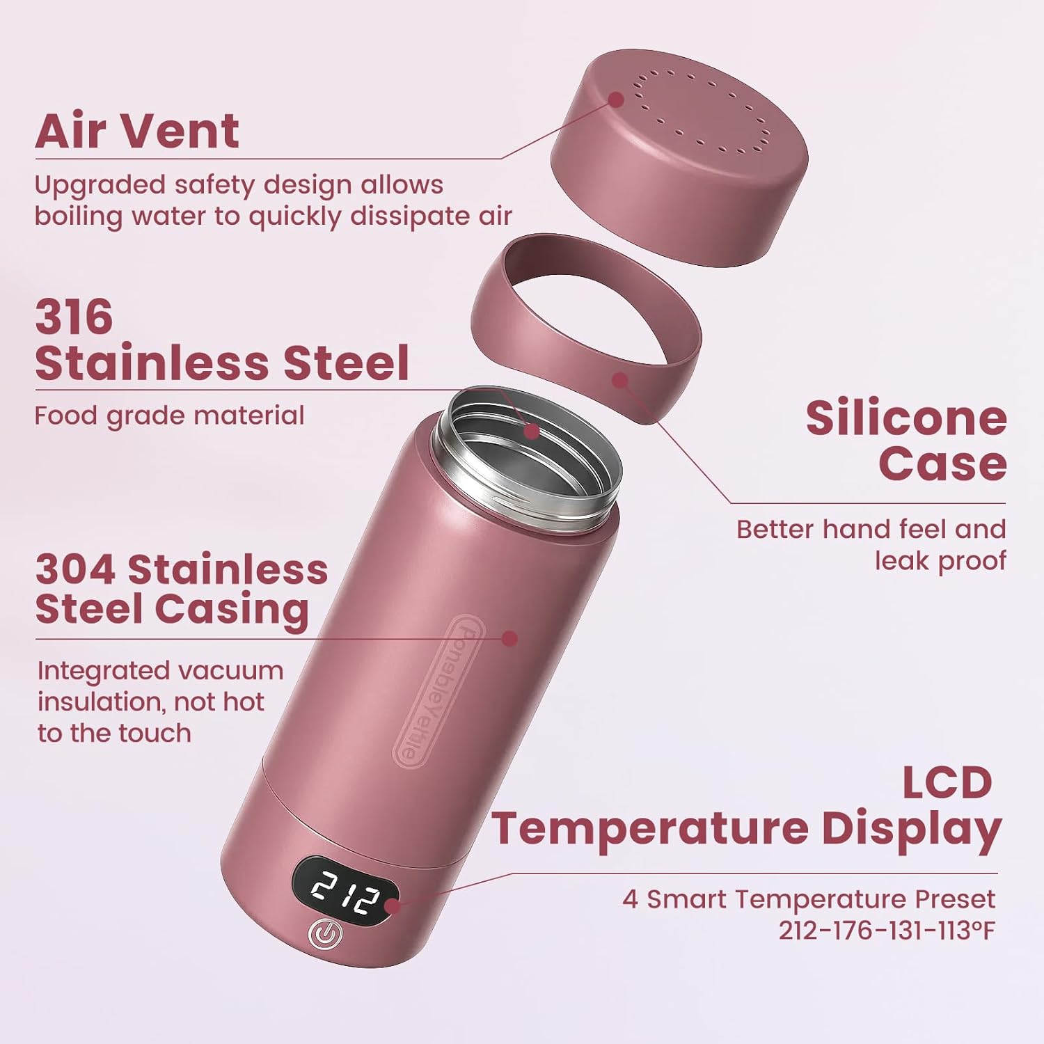 Food-Grade Stainless Steel Construction:The travel kettle features a durable 316 stainless steel inner pot (food-grade) with seamless design, paired with a 304 stainless steel exterior to prevent burns. With its heat retention capability, this mini electric kettle delivers healthier hot water anytime. Wherever you go, enjoy safe and hygienic drinking water with peace of mind.
