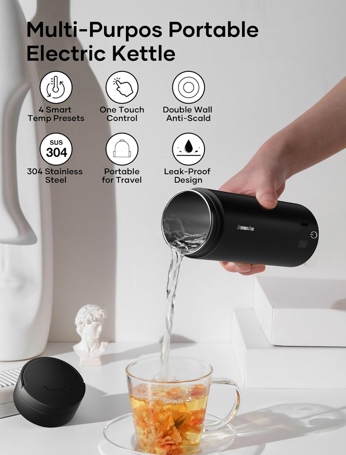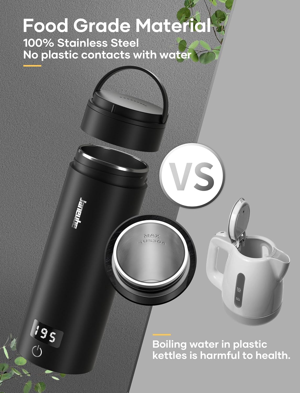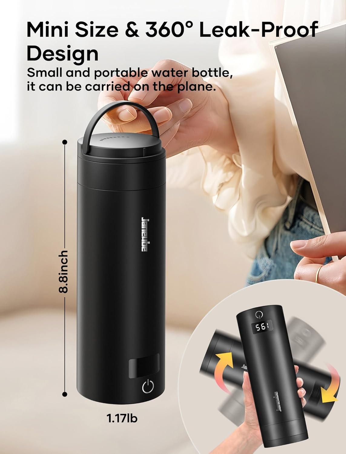 Portable & Leakproof – The portable travel water bottle measures just 8.8 inches and weighs 1.1 pounds. The compact design is designed for travel, business trips, camping, office and other scenarios, and is especially suitable for use in hotels without a clean electric kettle. 360°Leak-Proof Design, so it won’t leak even upside down turn. NOTE: It ONLY works when plugged in!