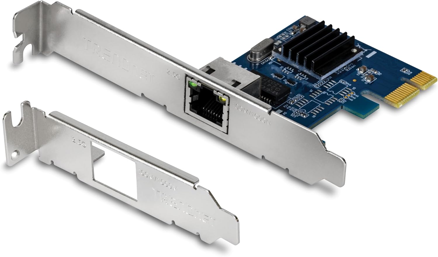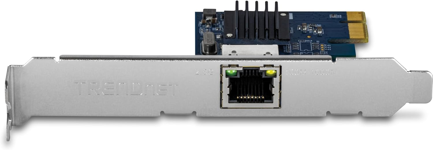 TRENDnet’s 2.5GBASE-T PCIe Network Adapter, model TEG-25GECTX, converts a free PCIe 2.0 or later slot into a 2.5GBASE-T Ethernet port. The 2.5G network adapter includes advanced features such as jumbo frame and VLAN tagging support. Compatible with Windows® desktop computer designs, the 2.5G network adapter includes both standard and low-profile brackets.