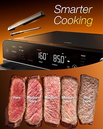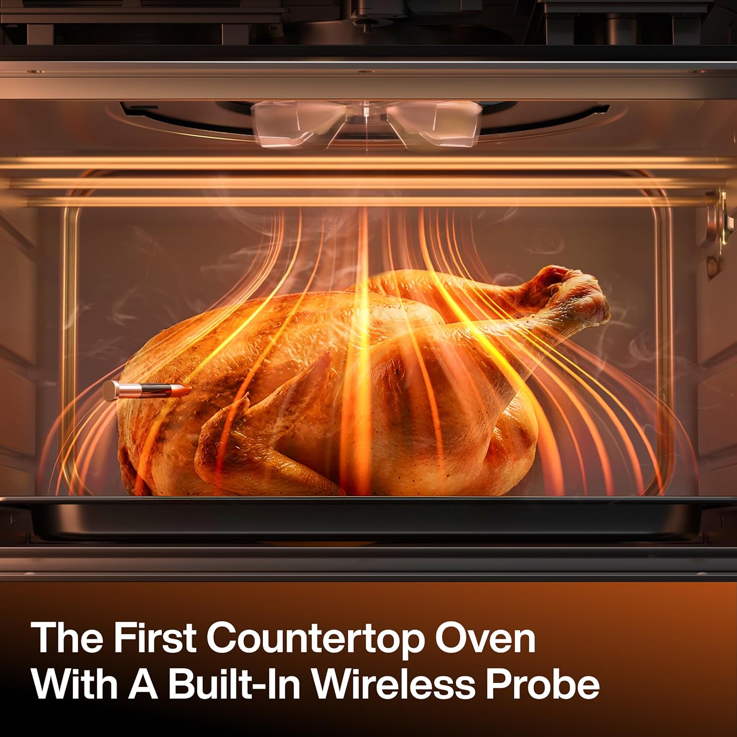 World’s First Oven with Built-in Wireless Probe: Cook with precision at home using the first air fryer oven with a built-in wireless probe. Tracks core temperature in real time and automatically stops at your desired doneness. Smart Remove-Temp auto-shutoff prevents overcooking and a built-in signal booster keeps readings stable through light foil. No wires, no pairing, no guessing