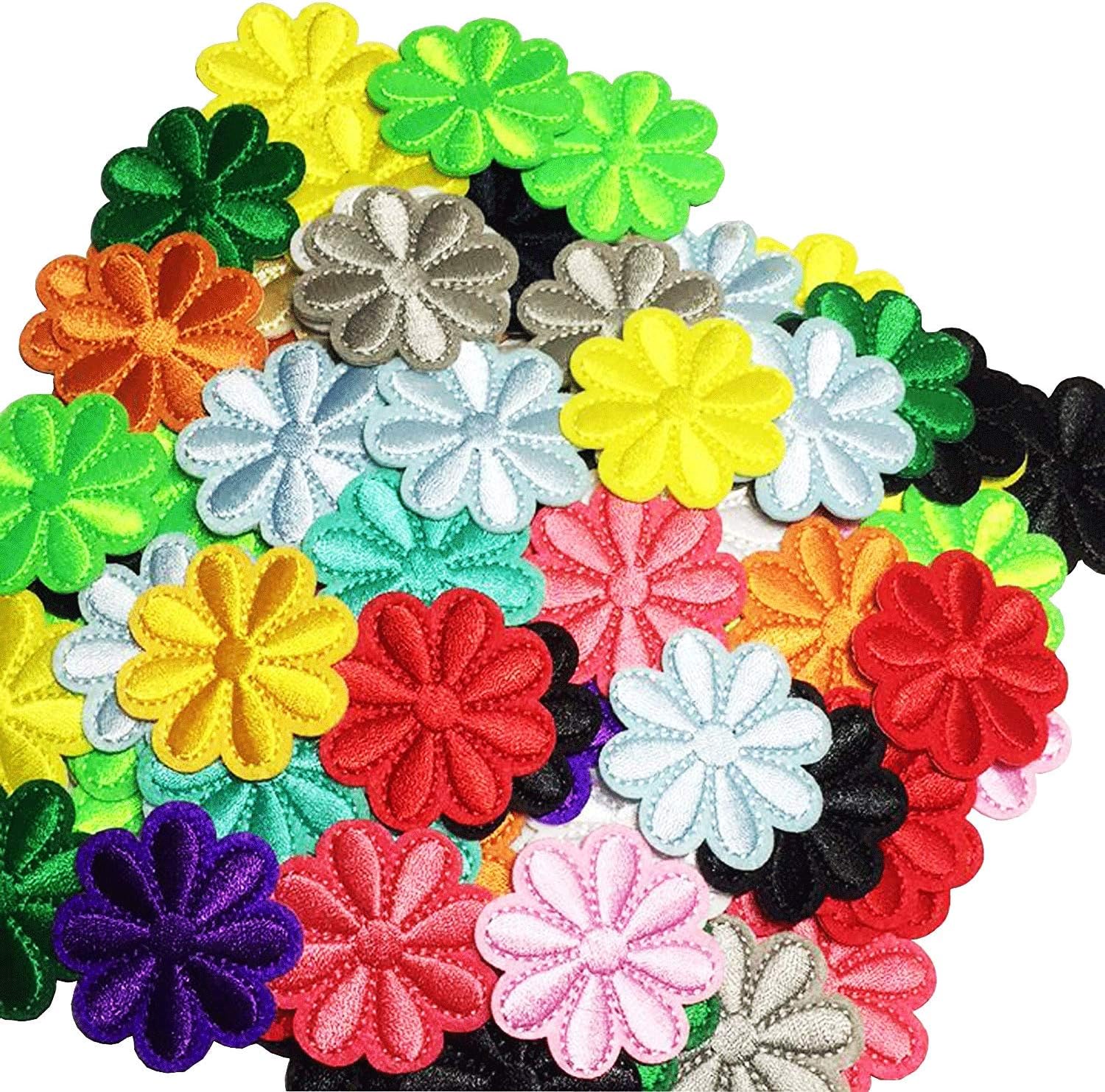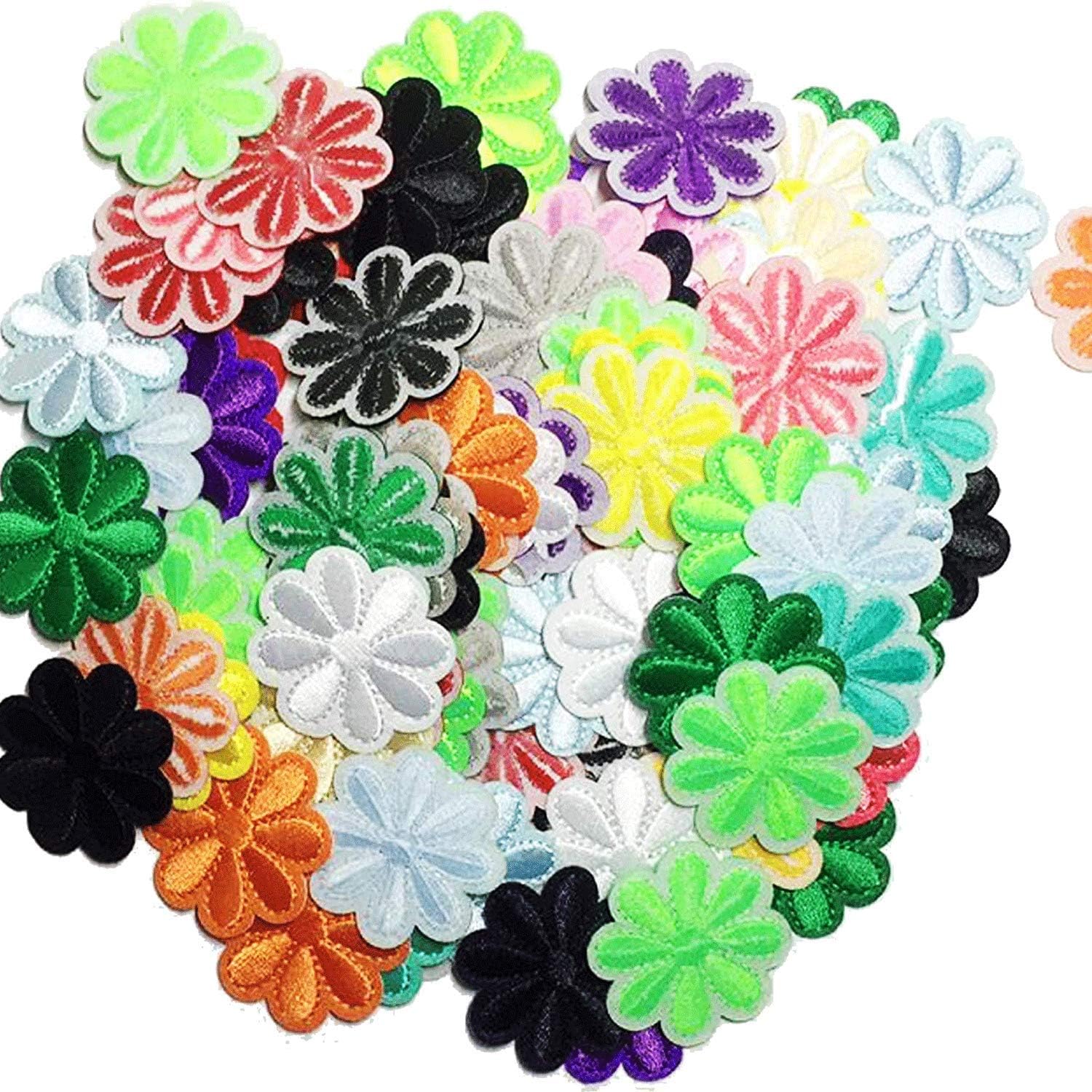 🌸 100 VIBRANT FLOWER DESIGNS: Features colorful 8-petal flowers with chain-stitch outlines in mixed colors including blue, white, yellow, orange, red, pink, green, brown, gray, and black – exactly as shown in your images