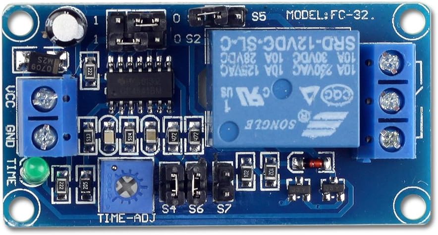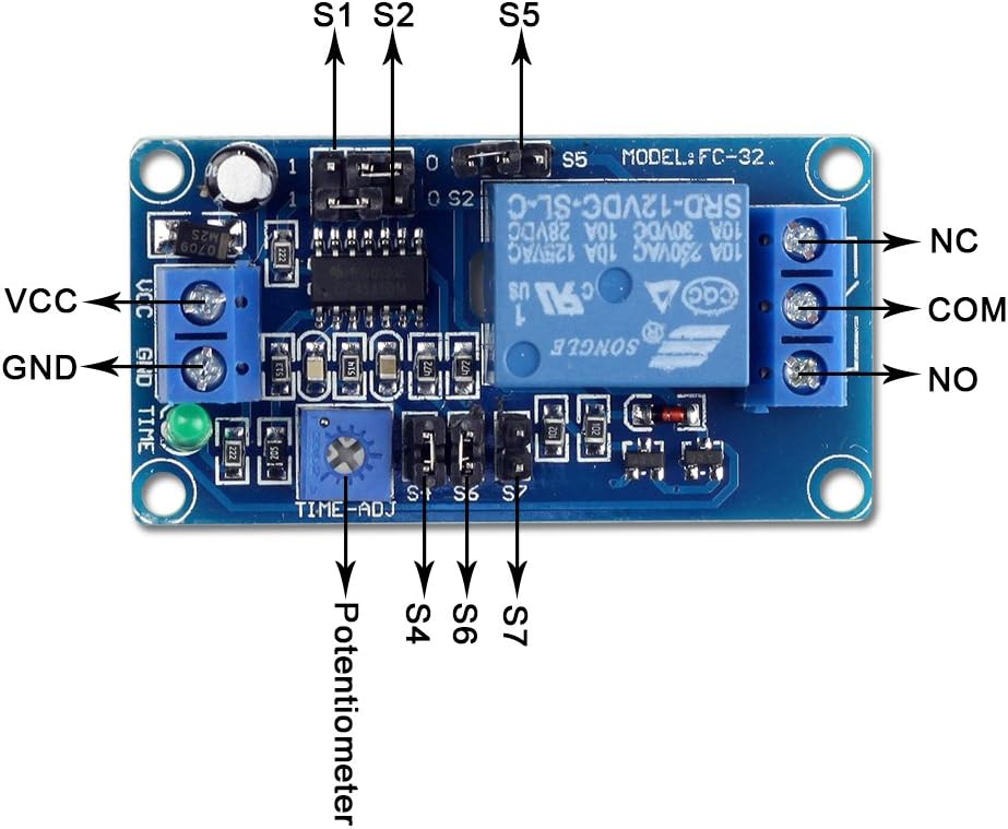 The DC 12V time delay relay module is versatile and adjustable. The delay time can be adjusted with a potentiometer at shortest 0.1s up to 1h. User can delay time as needed, widely used in Smart home, Tachograph, GPS, PLC control, industrial control, electronic experiment, Arduino robot etc.