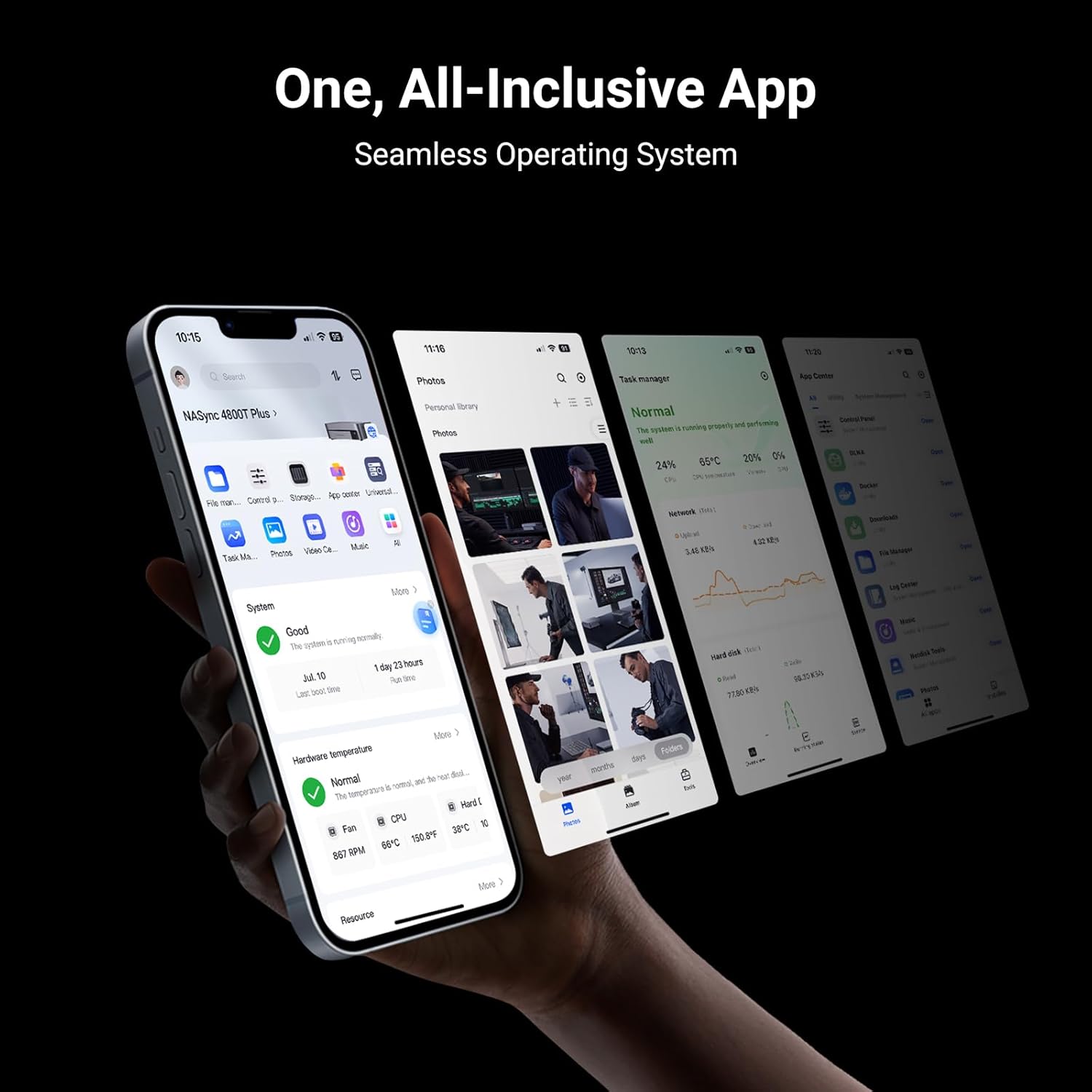 One, All-Inclusive App: Rather than downloading individual applications for specific functions, the NAS App incorporates these functions into one place. Access Storage Manager, Files, Photos, and more, all from one convenient location. (Please follow the instructions to upgrade the firmware for a better experience.)