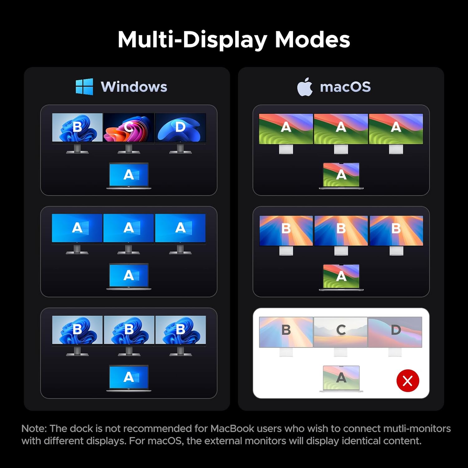 Ultimate Triple Monitor Docking Station for Laptop:This USB C docking station is your gateway to a stunning multi-monitor setup. With two HDMI ports (4K@60Hz) and one DisplayPort (4K@120Hz), this laptop dock transforms your laptop docking station into a brilliant command center for work and entertainment.