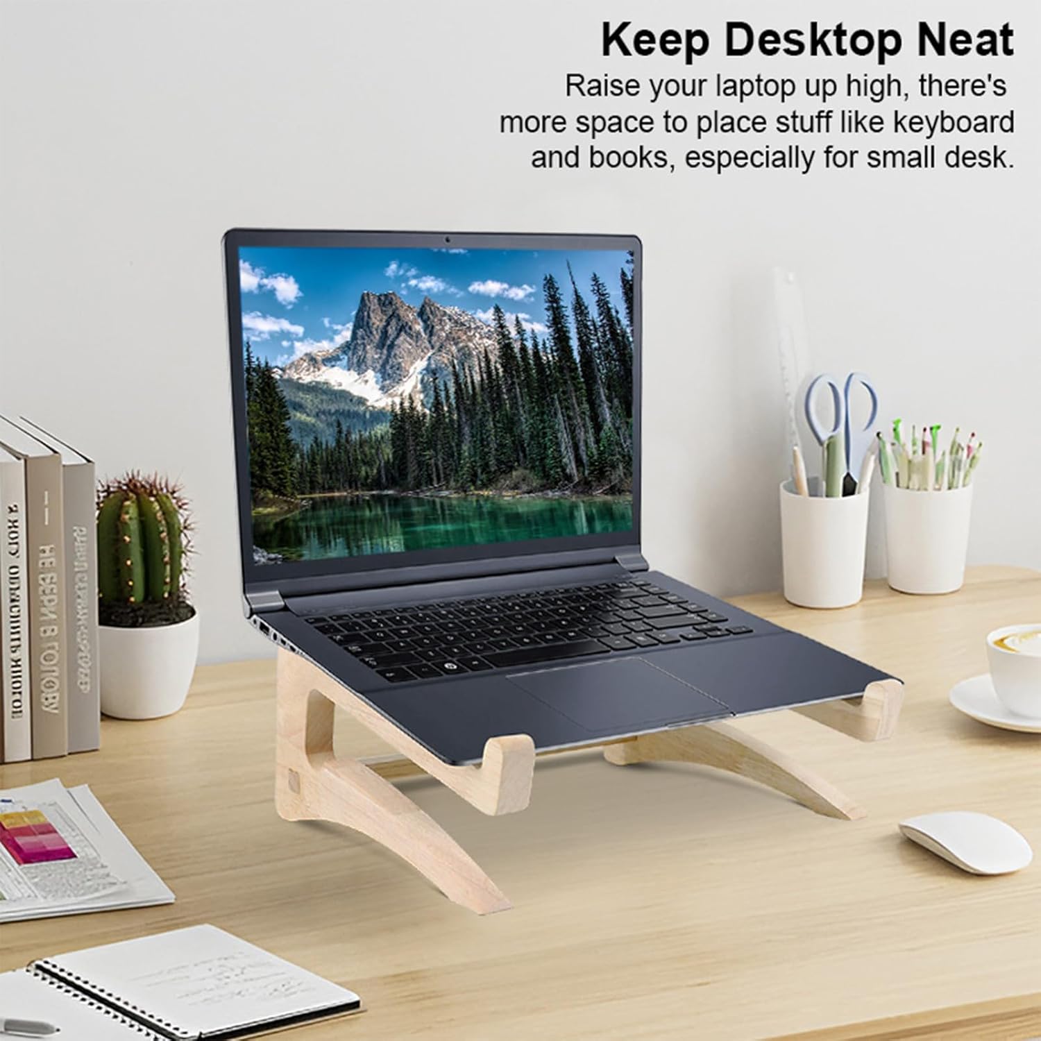 The desktop stand is made of solid wood, which is strong, light and practical, and can meet all your needs for laptops.