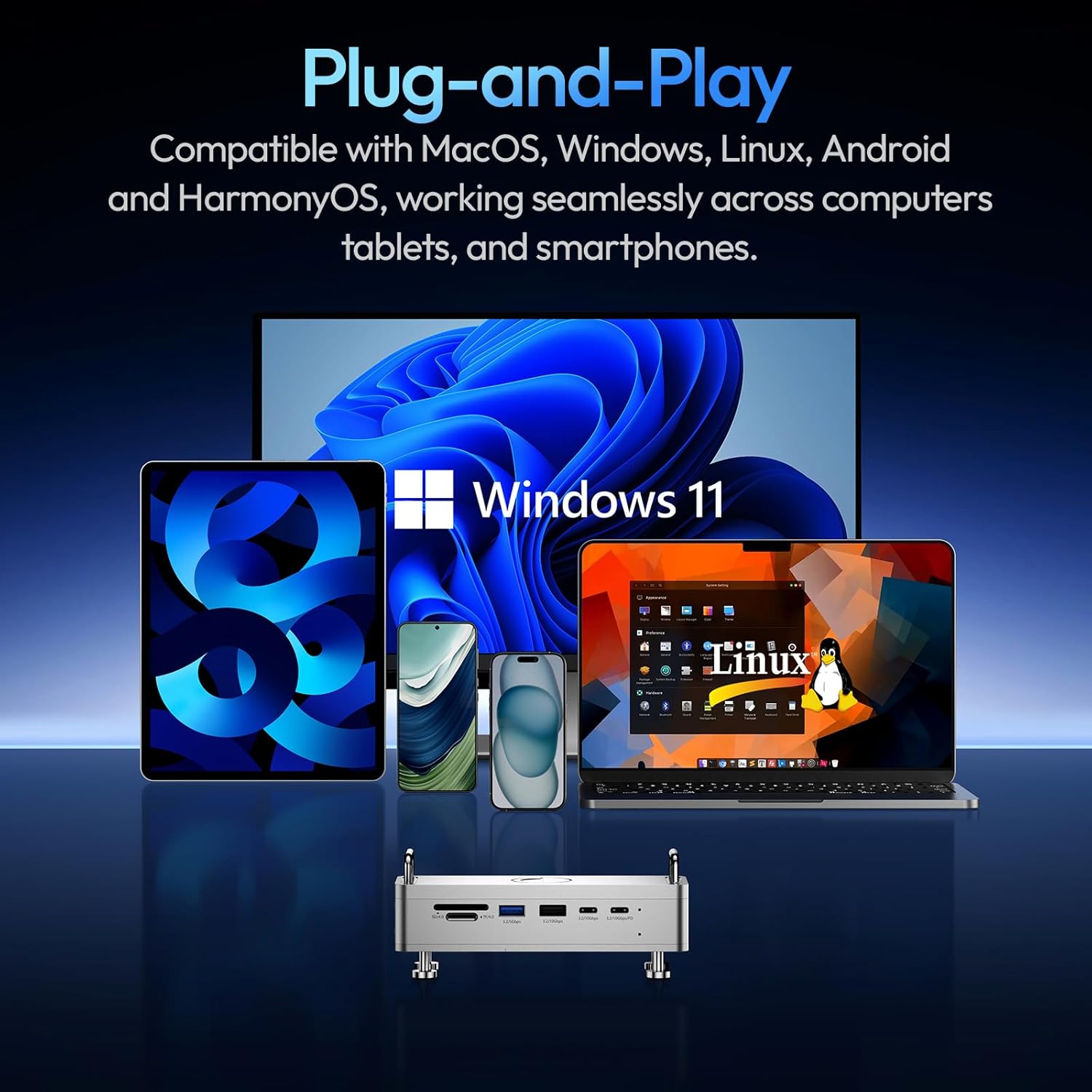 🔌【Cross-System Compatibility】Fully compatible with macOS (including Apple Mac Mini M4 & M4 Pro), Windows, Linux, Android, and HarmonyOS. No drivers needed—just plug and go. Great for anyone using the Mac Mini M4 Docking Station with multiple devices.