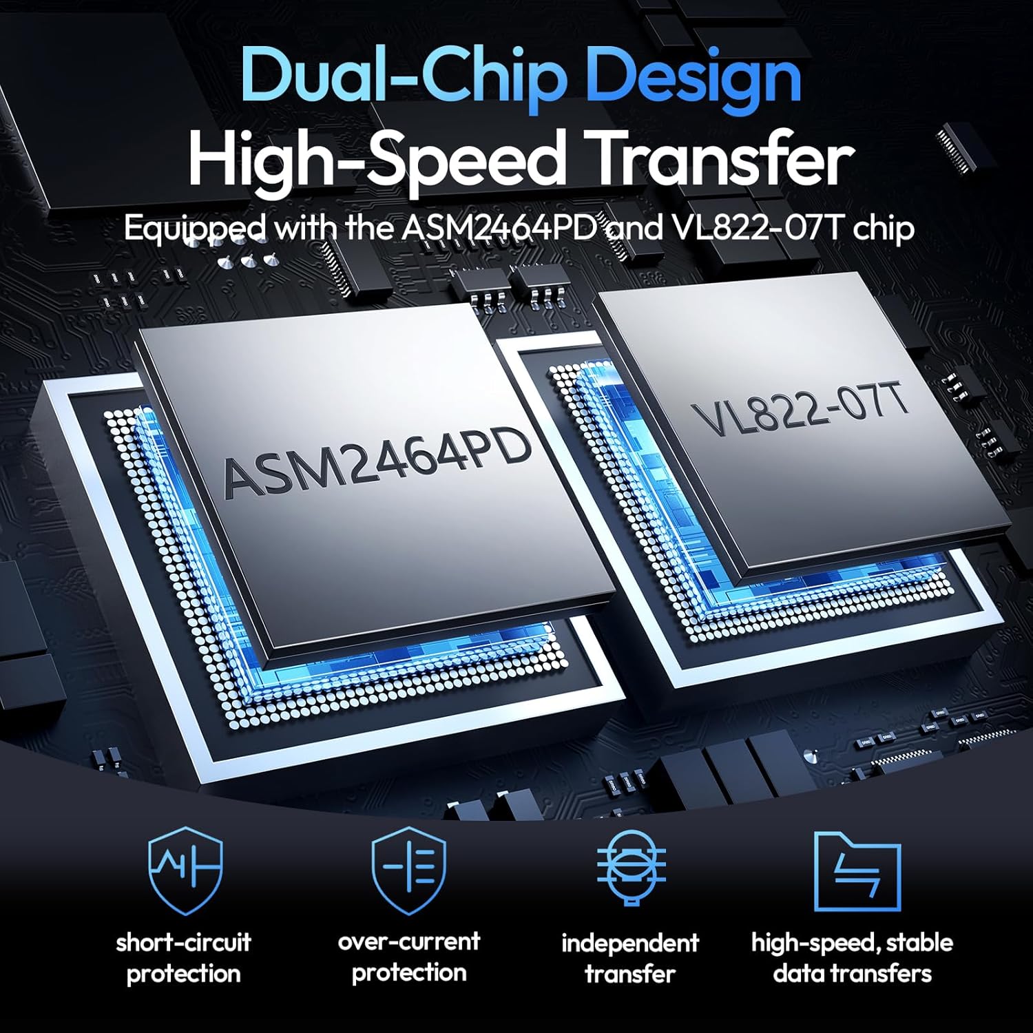 🛡️【Advanced Dual-Chip Protection】Built with ASM2464PD and VL822-07T chips for ultra-fast data transfer and superior protection: short-circuit, over-current, and independent safety management. Ideal compatible with your Mac Mini M4 dock setup.