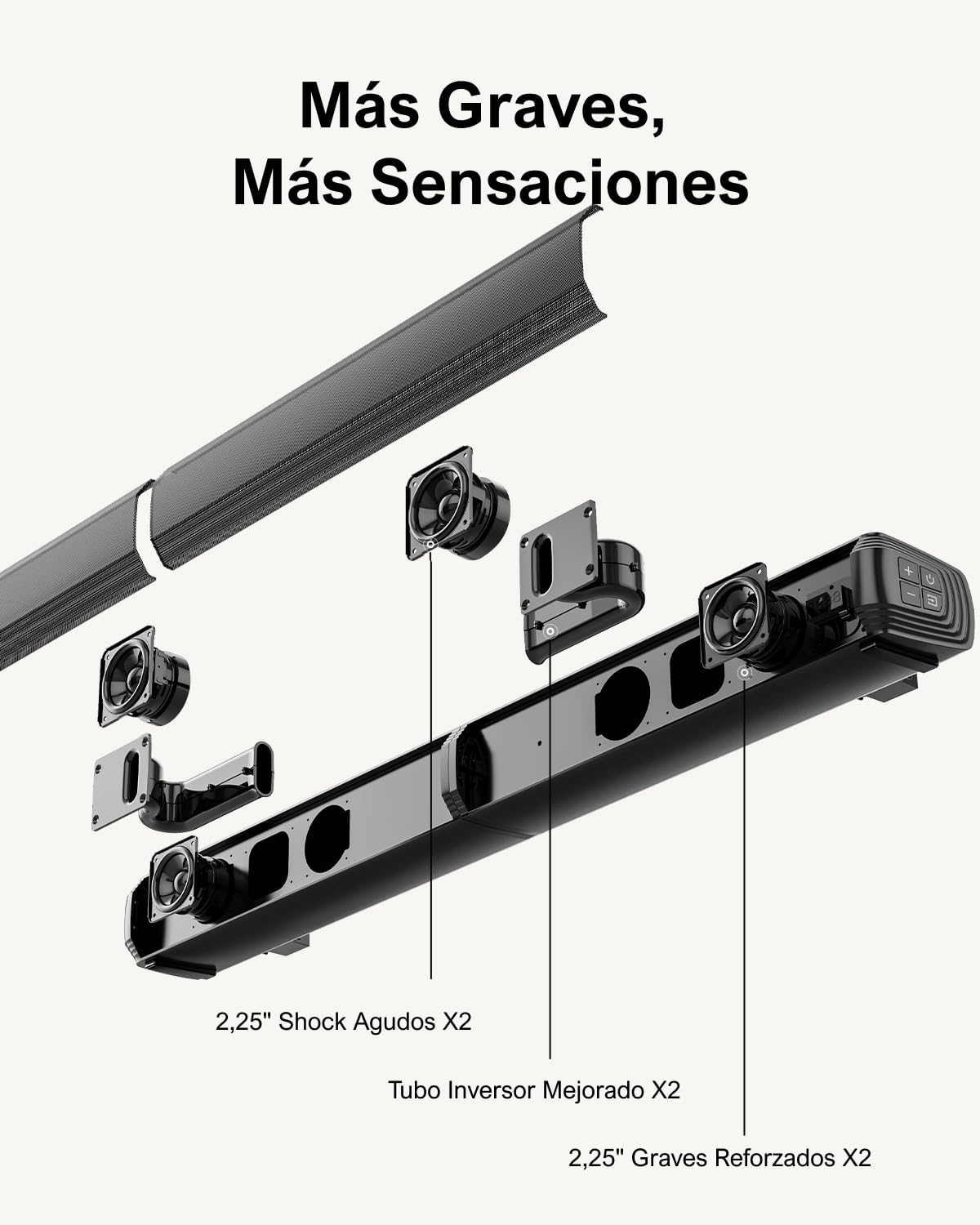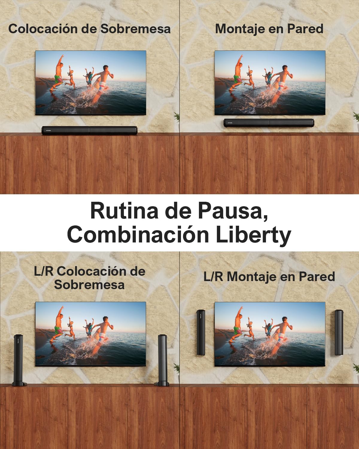 Versatile and Space-Saving Shape – The detachable design of this sound bar allows you to assemble it in a variety of styles to fit the layout and atmosphere of your room. The split design saves space while the unique 7° tilt design enriches the soundstage with exclusive details.