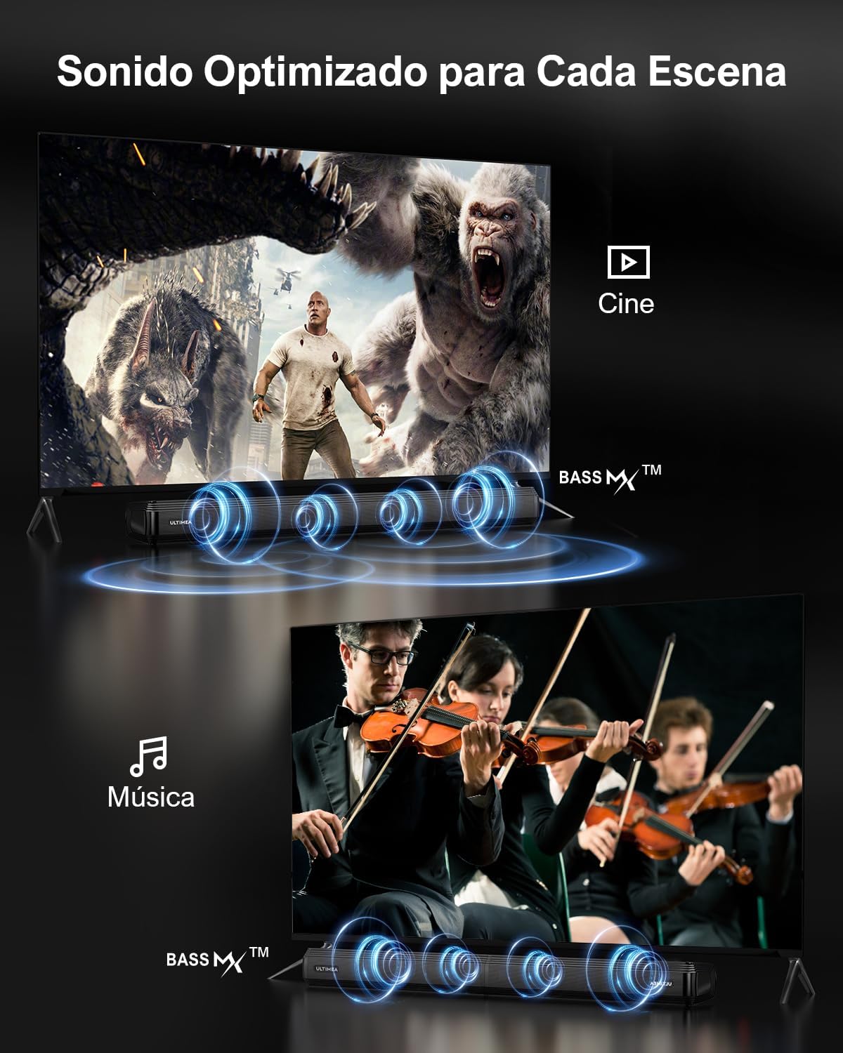 Personalized Sound Experience – Elevate your audio with 3 EQ modes designed for music, movies, and games. Ultimea exclusive BassMX technology enriches the low frequencies, enabling adjustable bass for a rumble, pulse-pounding Bass. All of these modes are easily accessible with a press of a button on the EQ settings.