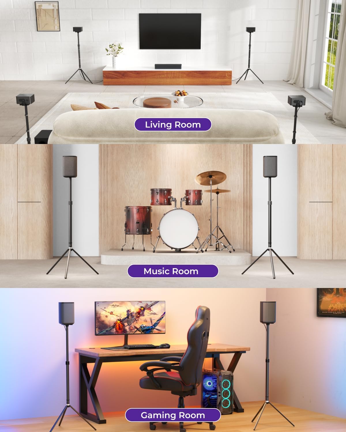 Compatible with Various Speakers: The Steady 310 speaker stand offers three mounting options: a screw hole at the bottom, a screw hole at the back, or a keyhole mount. The package includes height- and width-adjustable parts, allowing you to mount speakers of different sizes. It is compatible with the ULTIMEA Poseidon, Skywave and Aura Series, as well as Sony, Samsung, LG, and more.