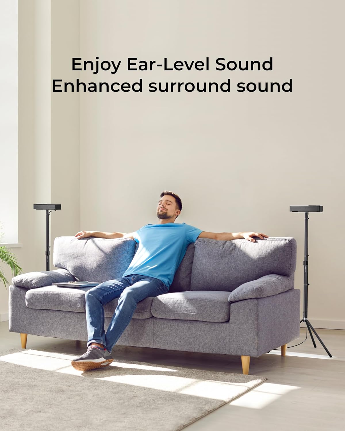 Adjustable height for Superior Sound: Easily adjust the height (24.4″ to 36.6″) for optimal sound. Simply twist the knob to position your Ultimea Nova S90 surround speakers at ear level, delivering richer, clearer, and more immersive surround sound for an exceptional listening experience.