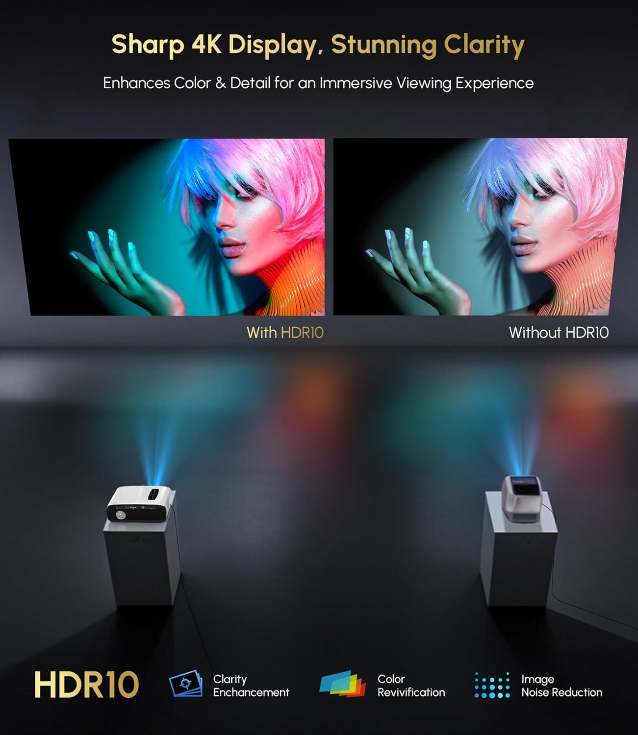 [4K Ultra HD Home Theater Experience] Experience cinematic brilliance with 4K resolution, a 20,000:1 contrast ratio, and 95% DCI-P3 color gamut. HDR10+ technology reveals richer colors, deeper blacks, and enhanced shadow detail
