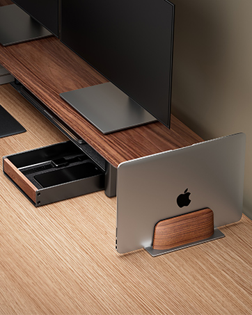 Premium Materials:Crafted with black walnut wood and aluminum, this macbook pro stand combines the natural charm of walnut with the abundance and allure of aluminum, making it a visually appealing choice.