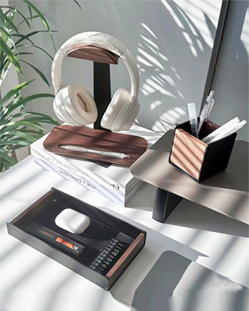 our desk organizers and headphone stand pair the cozy charm of wood with sleek design, keeping your workspace neat and inviting
