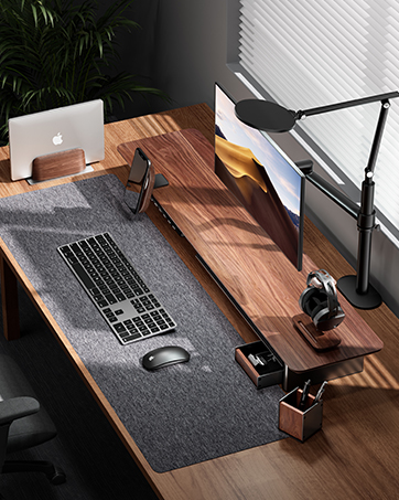 Enhanced Device Protection: The walnut wood panel is equipped with scratch-resistant pads, while the aluminum base features a silicone cushion, providing optimal protection against scratches and damage. Additionally, the anti-slip silicone pads ensure secure placement on any desktop surface.