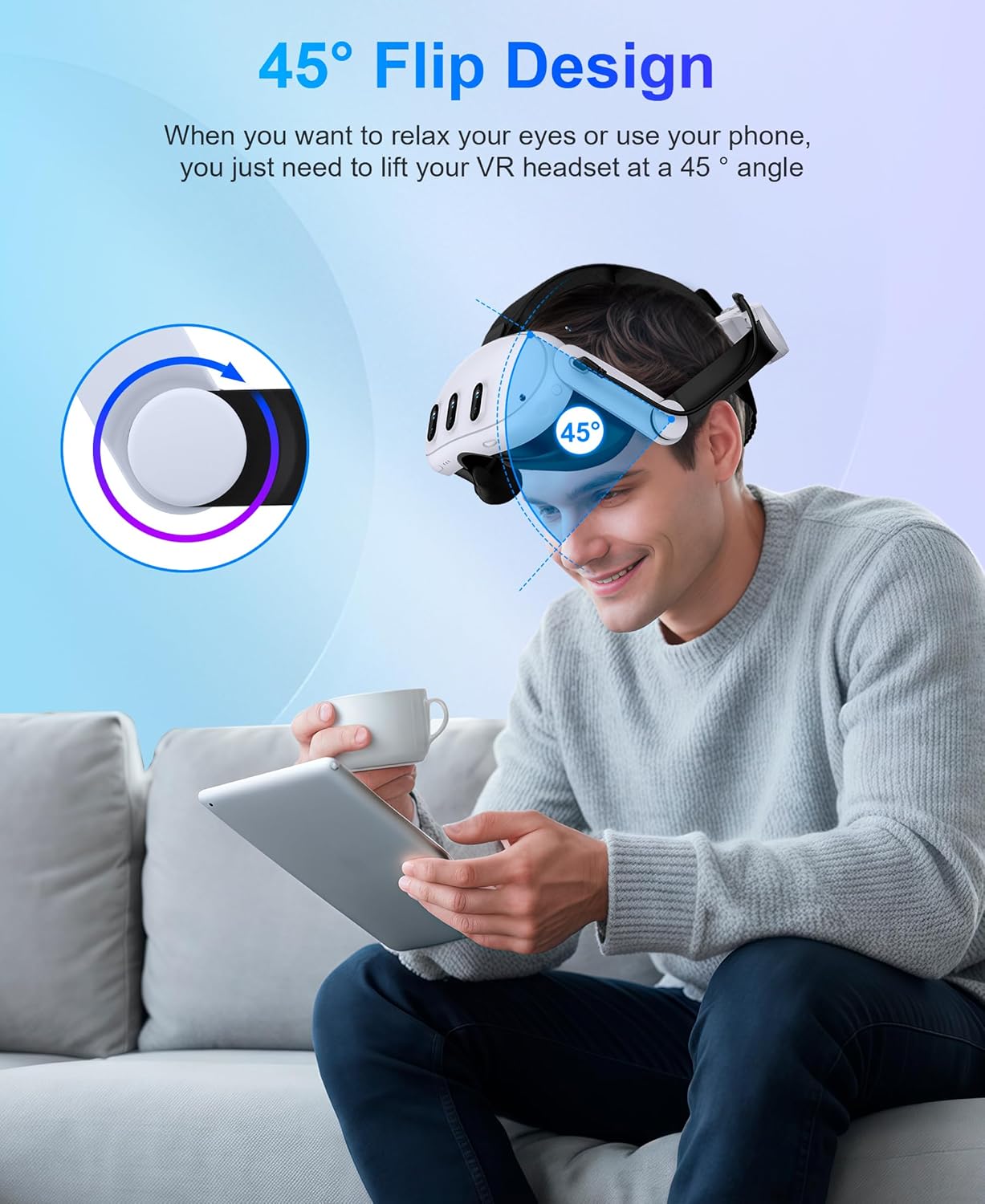 【Support Lifting Your VR Quest up 45°】When you want to gaze into the distance to briefly relax your eyes, or when drinking water, opening a door, or answering a phone, our VR headband can lift the support vr headset without taking off the device, restoring the realistic view in front of you.The replacement head strap’s comfortable,rechargeable function and adjustable are pretty choices for VR enthusiasts