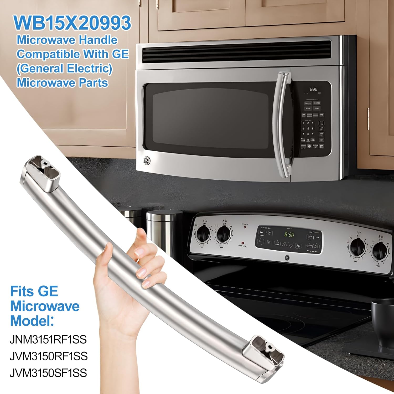【Heavy Duty WB15X20993 Microwave Handle Replacement for GE Microwave】Upgraded WB15X20993 ge microwave handle replacement,this is an improved ge microwave door handle, featuring a thicker strong material to withstand frequent use.High-temperature resistant & Corrosion Resistance,Long-lasting. The microwave handle design and position are optimized for easy operation and secure door closure. General Electric microwave oven door handle has precise size match microwave door handle dimensions.