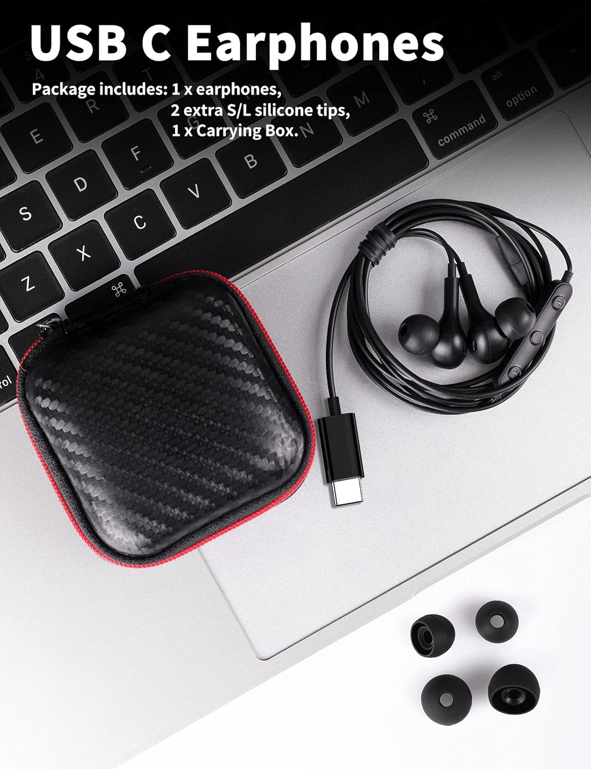 Magnetic Design and Hands Free: This USB Type C Earphone allow you to wear it around neck when you take the earbuds off to prevent wire tangled; And you can always reach them easily when you need to put them on; Meanwhile, it comes with a carrying case to storage the earbuds, earbuds adapter or other small accessories, less mess in daily use