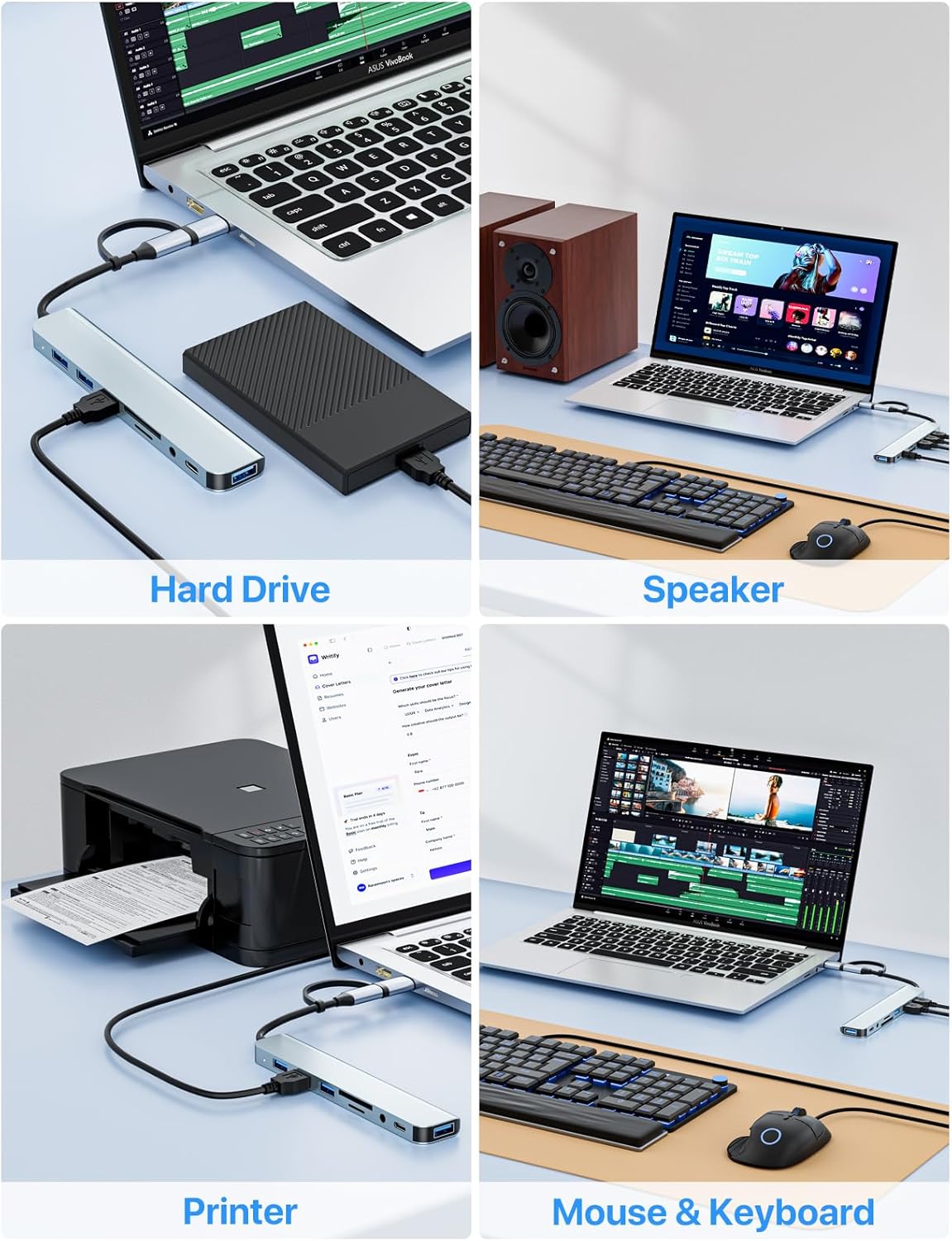 【8 in 1 Multiport Adapter】: WIRWTRU USB C to USB 3.0 hub with 1 x USB 3.0 port, 3 x USB 2.0 ports, 1 x USB C port, SD/TF Carder Reader and 1 x 3.5mm Audio Jack. USB 3.0, 5Gbps transfer speed , USB and USB-C 2.0: 480bps transfer speed, quickly transfer and download videos, music, photos and other files. 𝐍𝐎𝐓𝐄: 𝐀𝐥𝐥 𝐏𝐨𝐫𝐭𝐬 𝐍𝐨𝐭 𝐒𝐮𝐩𝐩𝐨𝐫𝐭 𝐌𝐨𝐧𝐢𝐭𝐨𝐫.