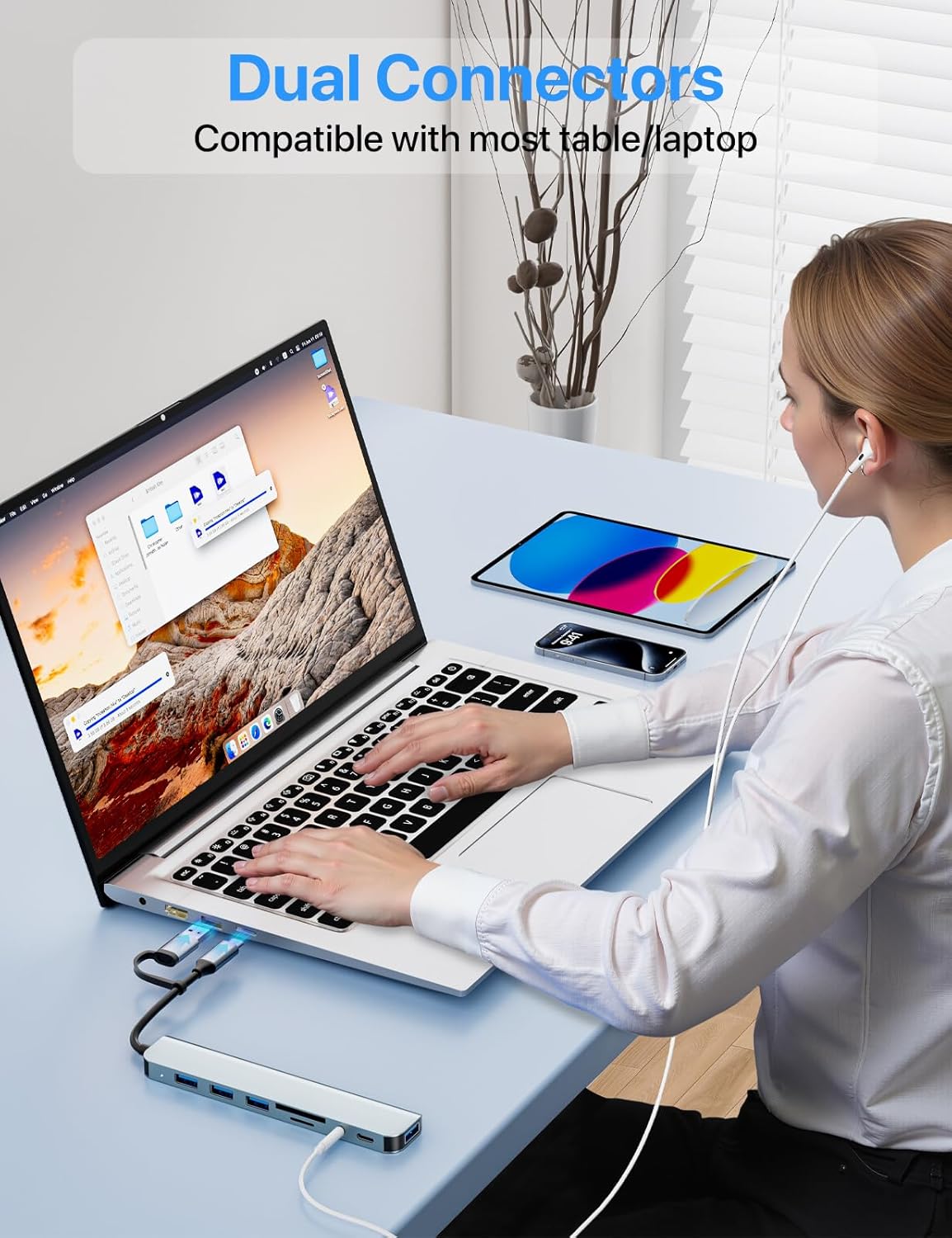 【Wide Compatibility】: This USB-A & USB-C hub Compatible with USB-C compatible with all PC, laptop, Such MacBook Pro/MacBook Retain/MacBook Air or Phone/Tablet with a Type C port,Windows 10, MacOS X, Android, Chrome OS Google (Up), Linux