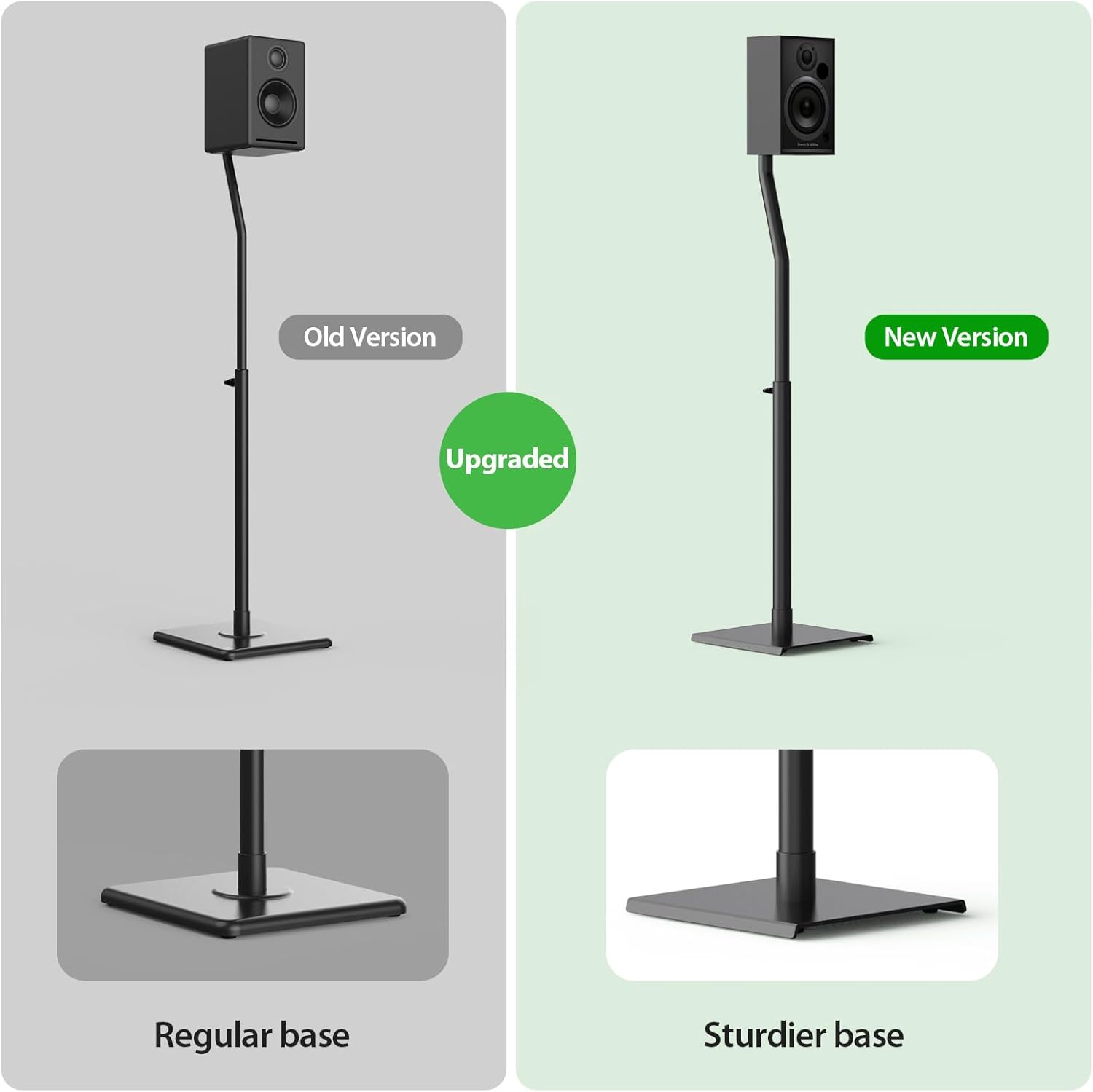 Sturdy Square Base:The floor speaker stands is constructed from high quality steel materials which is sturdy enough and durable. The square base of the rear speaker stands is more stable and the weight capacity up to 11lbs/5kg per stand. No worries about it tipping over. Rubber feet for wooden, cement, tile or other hard floor. If the stand is placed on carpet, install the carpet nail.