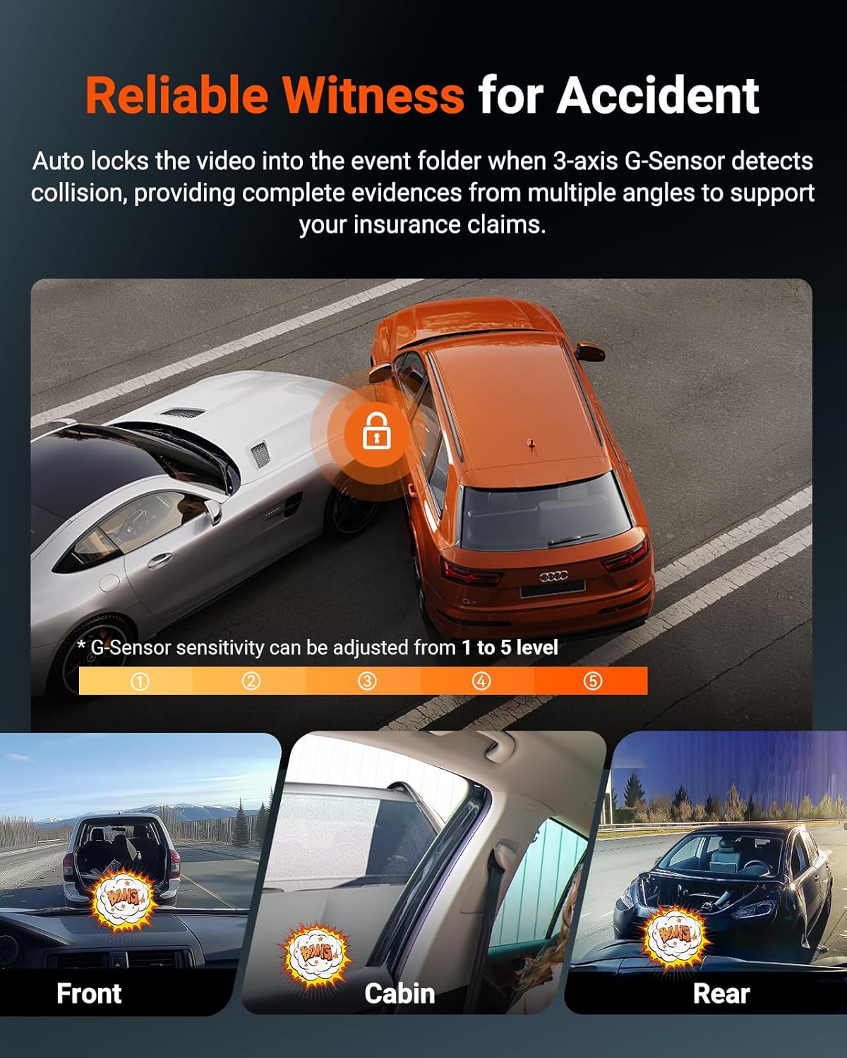 [Optional Front+Inside/Rear Dual Recording Mode ] The triple lens dash camera offers on-demand recording modes to save storage and target key scenes. The adjustable cabin camera angles and optional audio deliver flexible, private, and worry-free 360° safeguarding, perfected for rideshare and Uber drivers, taxis, and family vehicles.