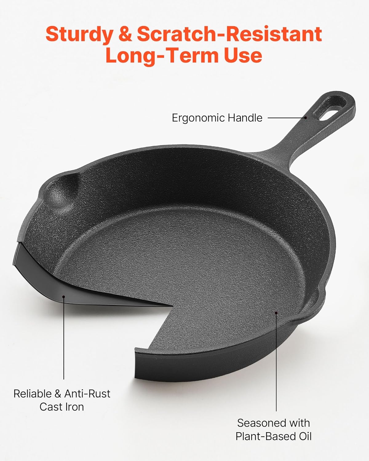 Built to Last: Crafted from tough cast iron with a natural oil coating, these pans feature excellent heat retention and durability. The sturdy cast iron body helps reduce surface scratches and keeps its shape over time