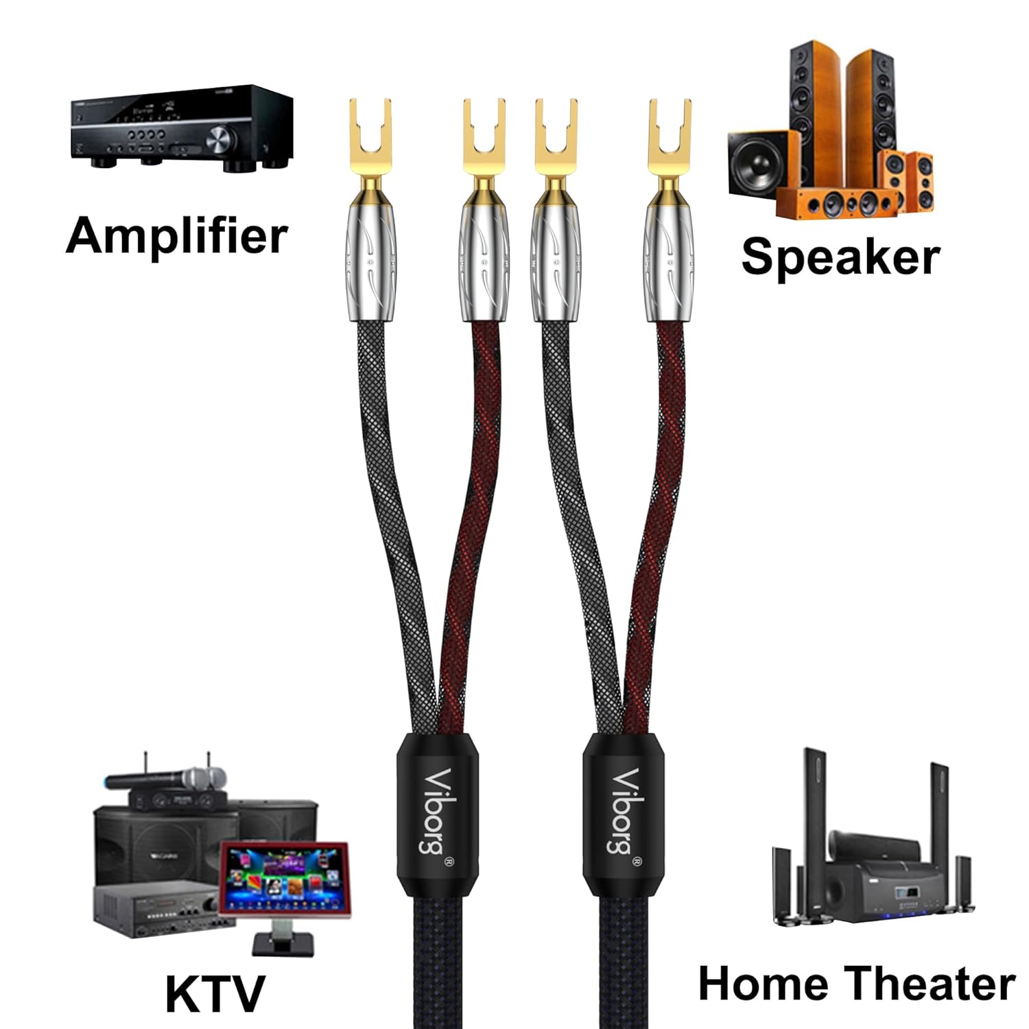 【High-quality and accurate sound】- With 16 AWG Silver-plated OFC construction, this hifi speaker cable provides optimal conductivity and minimal signal distortion. The gold-plated pure copper Y spade connectors and OFC silver-plated copper wire contribute to the clarity and natural sonic accuracy of your audio.