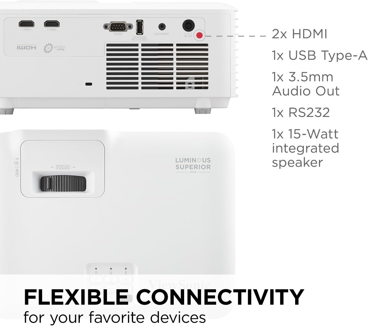 Short Throw FHD Laser Projector: Full HD (1920x1080p) resolution with a 0.49 laser projector and 4,200 ANSI lumens for bright, detailed images in compact spaces