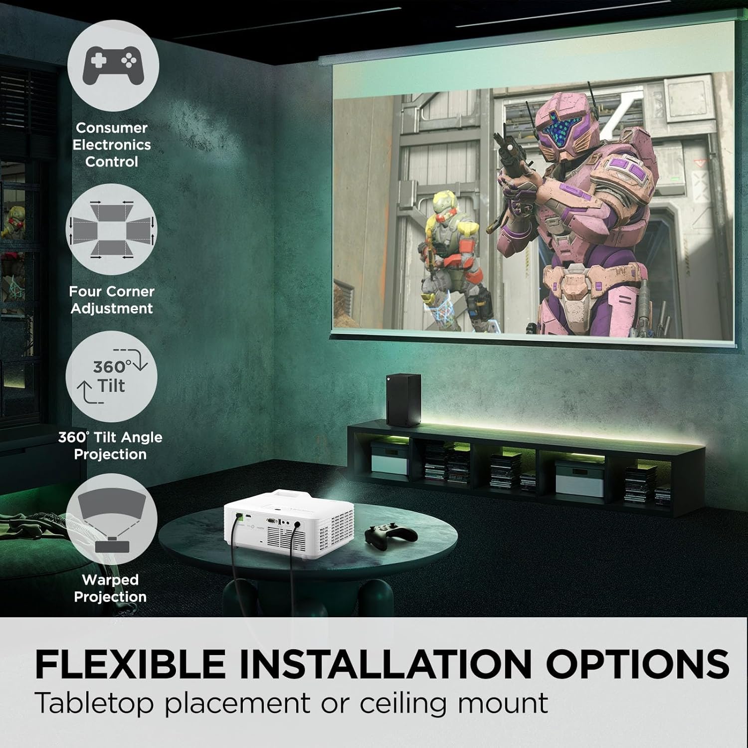 4K Home Theater Projector: UHD (3840x2160p) 4K resolution with a 1.1-1.5 throw ratio and 4,000 ANSI lumens perfect for gaming and home entertainment