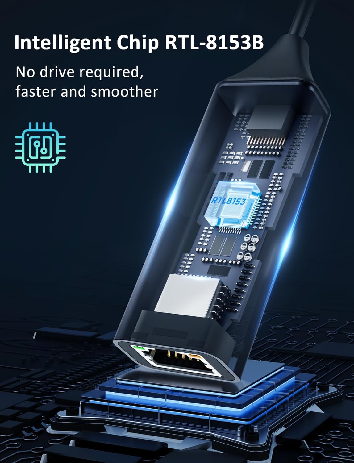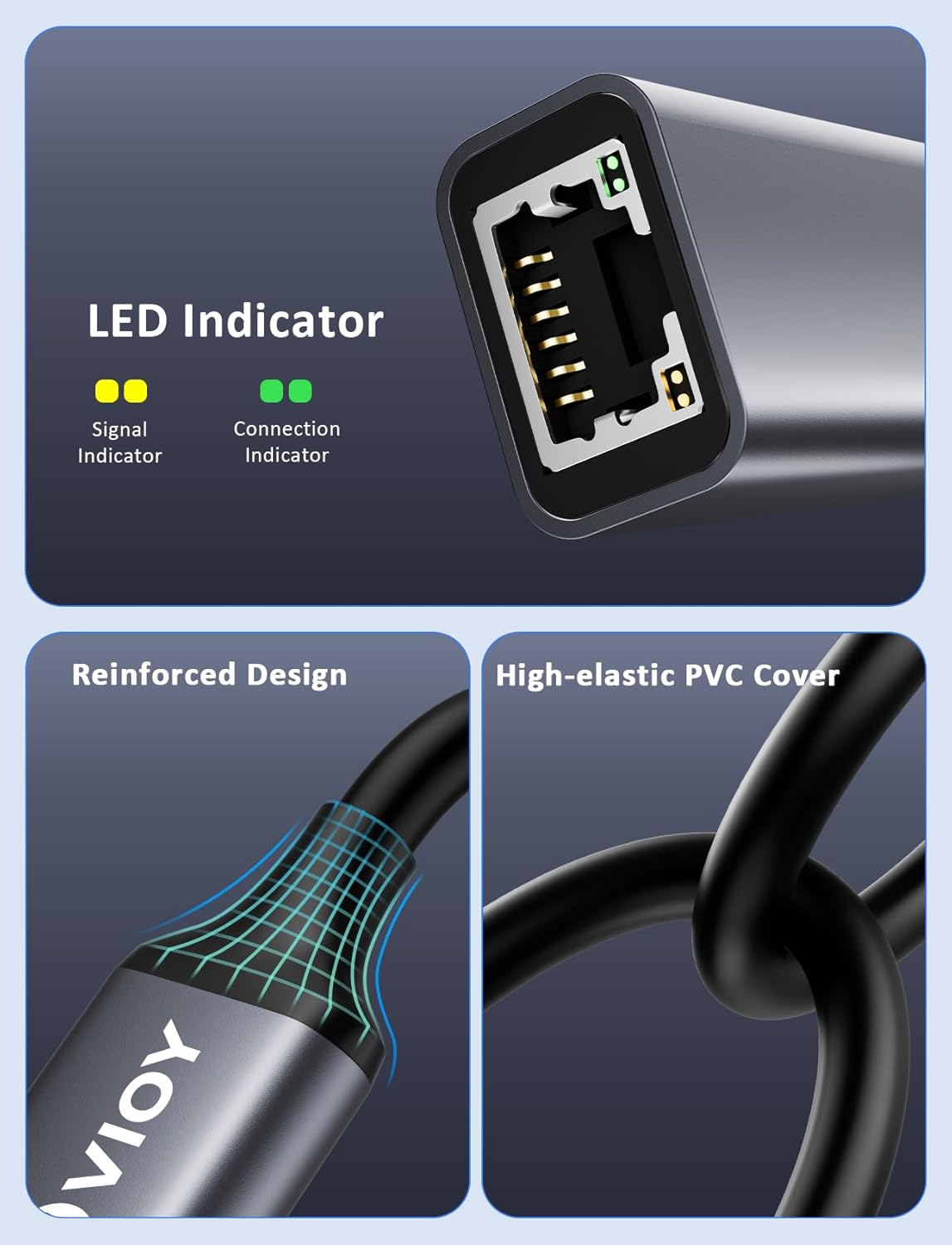 Stable & High-Speed Connection: VIOY USB-C to RJ45 Ethernet adapter delivers ultra-fast speeds up to 1000Mbps, with backward compatibility for 100Mbps/10Mbps networks. Ideal for lag-free online work, video meetings, gaming, 4K streaming, and large file transfers. Note: For optimal 1Gbps performance, use a CAT6 or higher Ethernet cable