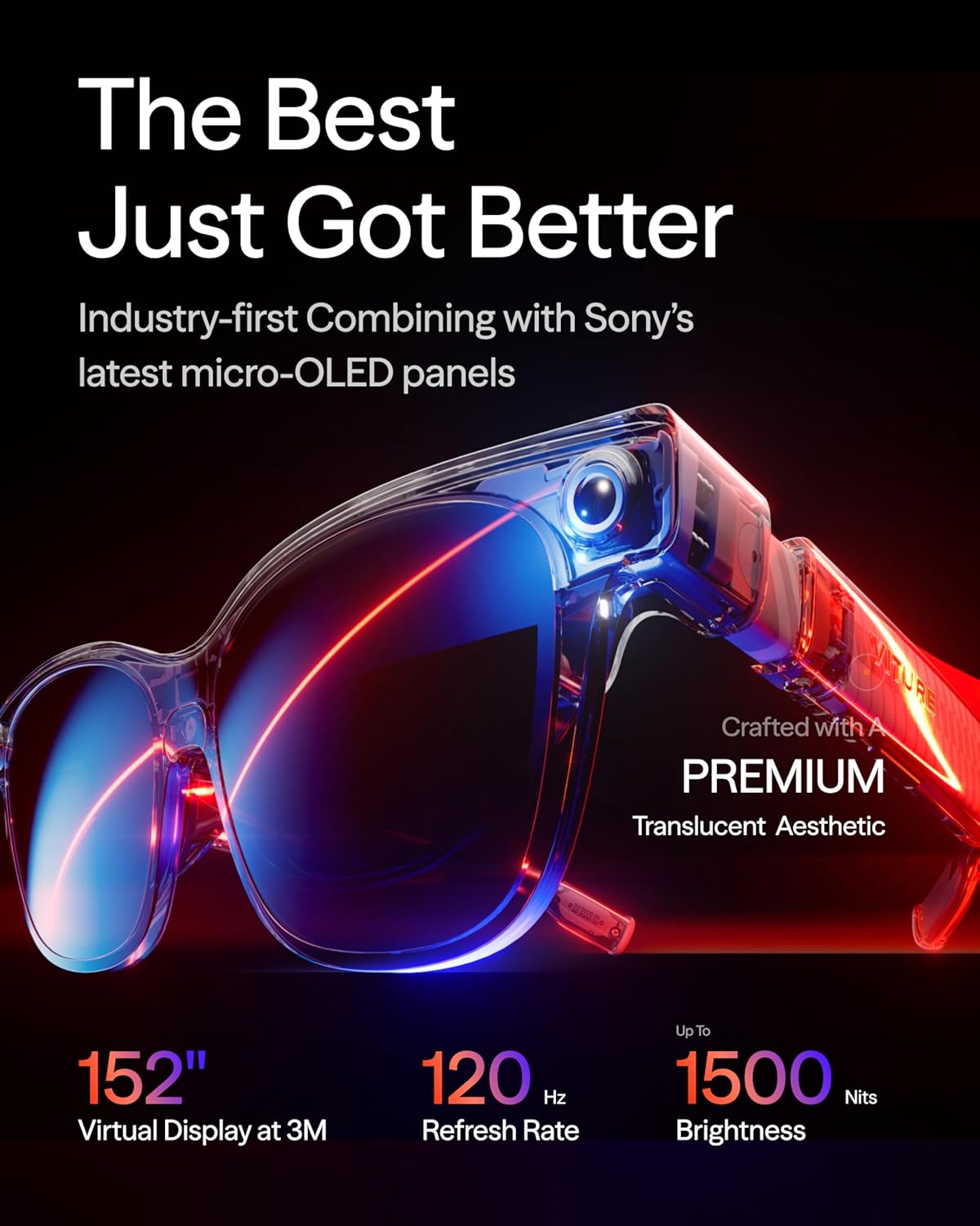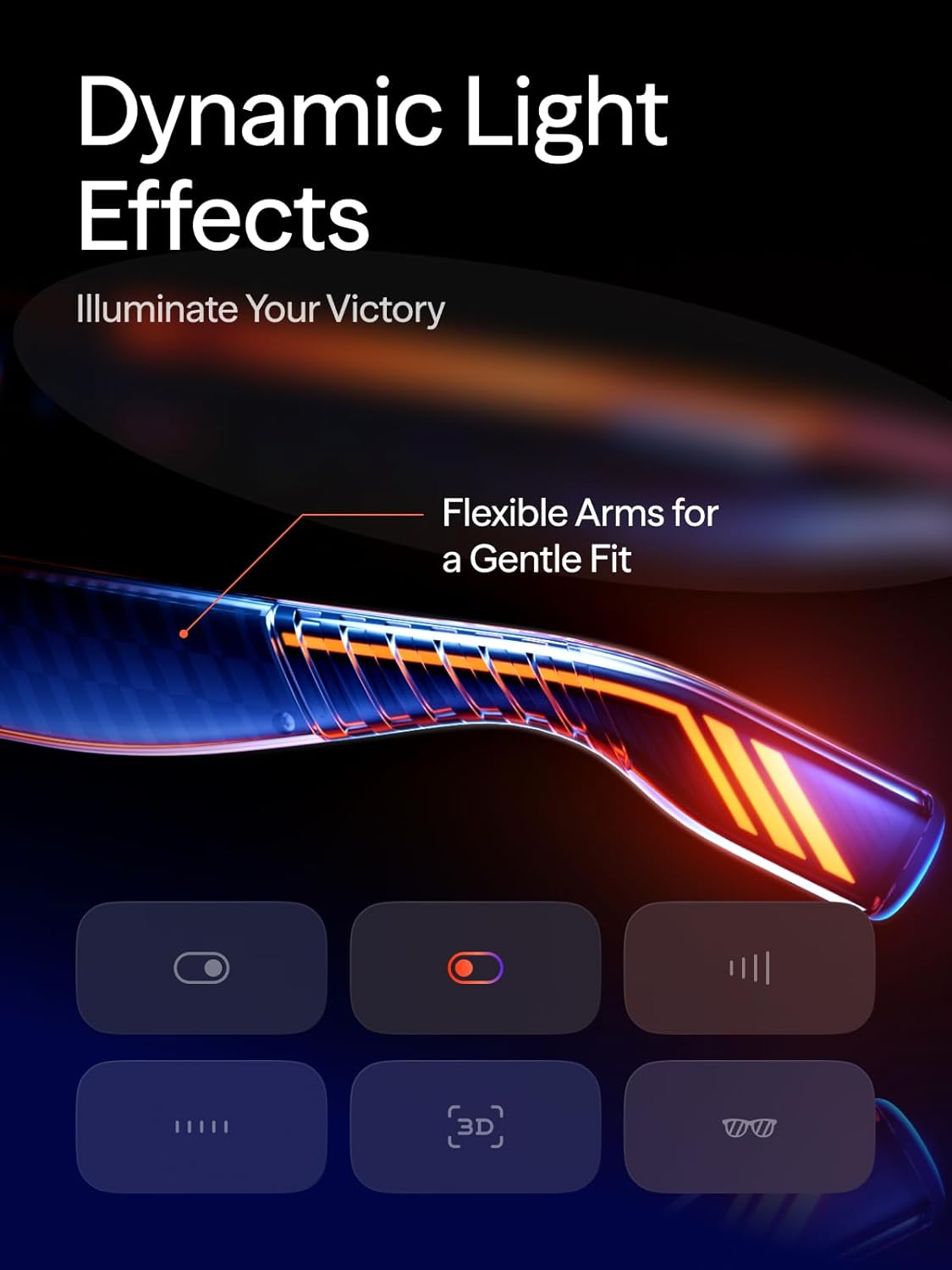 【PREMIUM TRANSLUCENT DESIGN WITH DYNAMIC LIGHT EFFECTS】Illuminate your victory! Sync colors and animations to match your gaming persona or productivity mode, creating a true conversation starter that reflects your style. Customize your vibe (coming soon) with the first programmable RGB lighting ever in XR glasses.