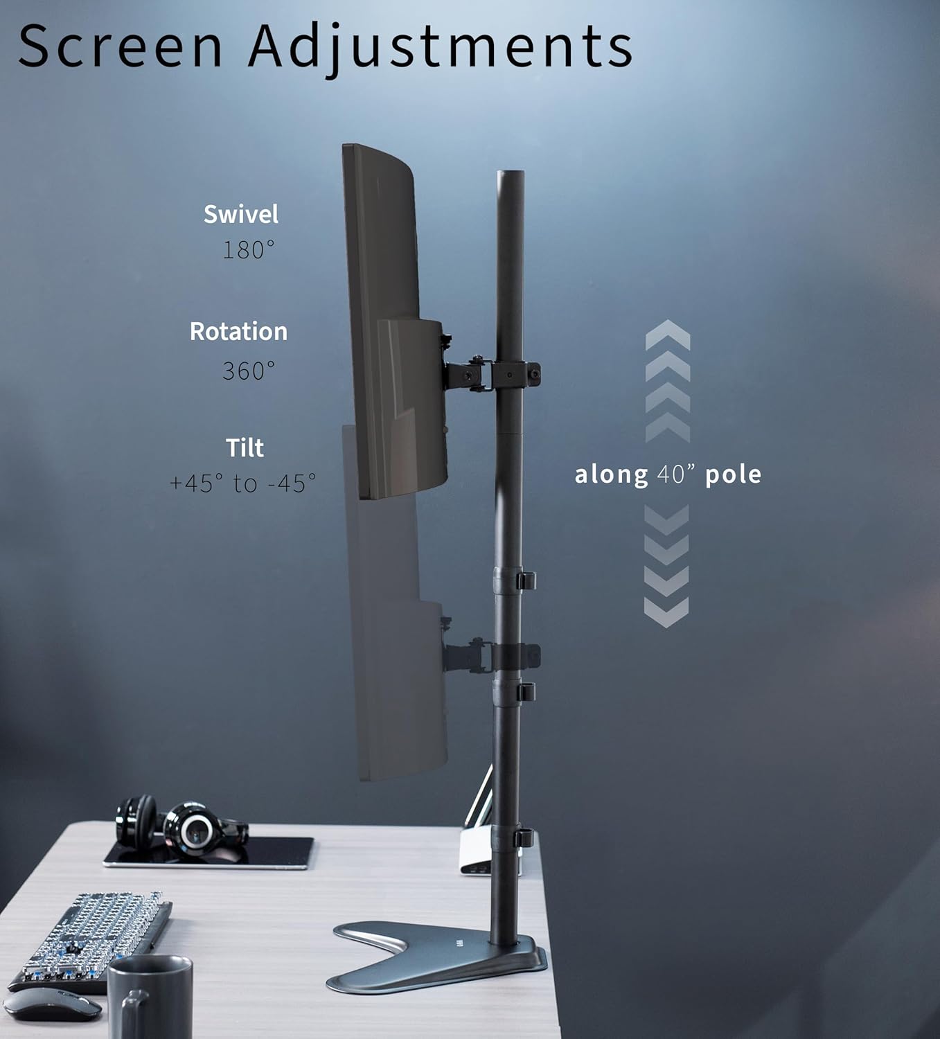 Fits 13″ to 27″ Screens: Single monitor mount specifically designed for standing, fitting most screens 13” to 27” in size and 22 lbs in weight with 75x75mm or 100x100mm backside VESA patterns. Cable management is included to keep cords clean and organized