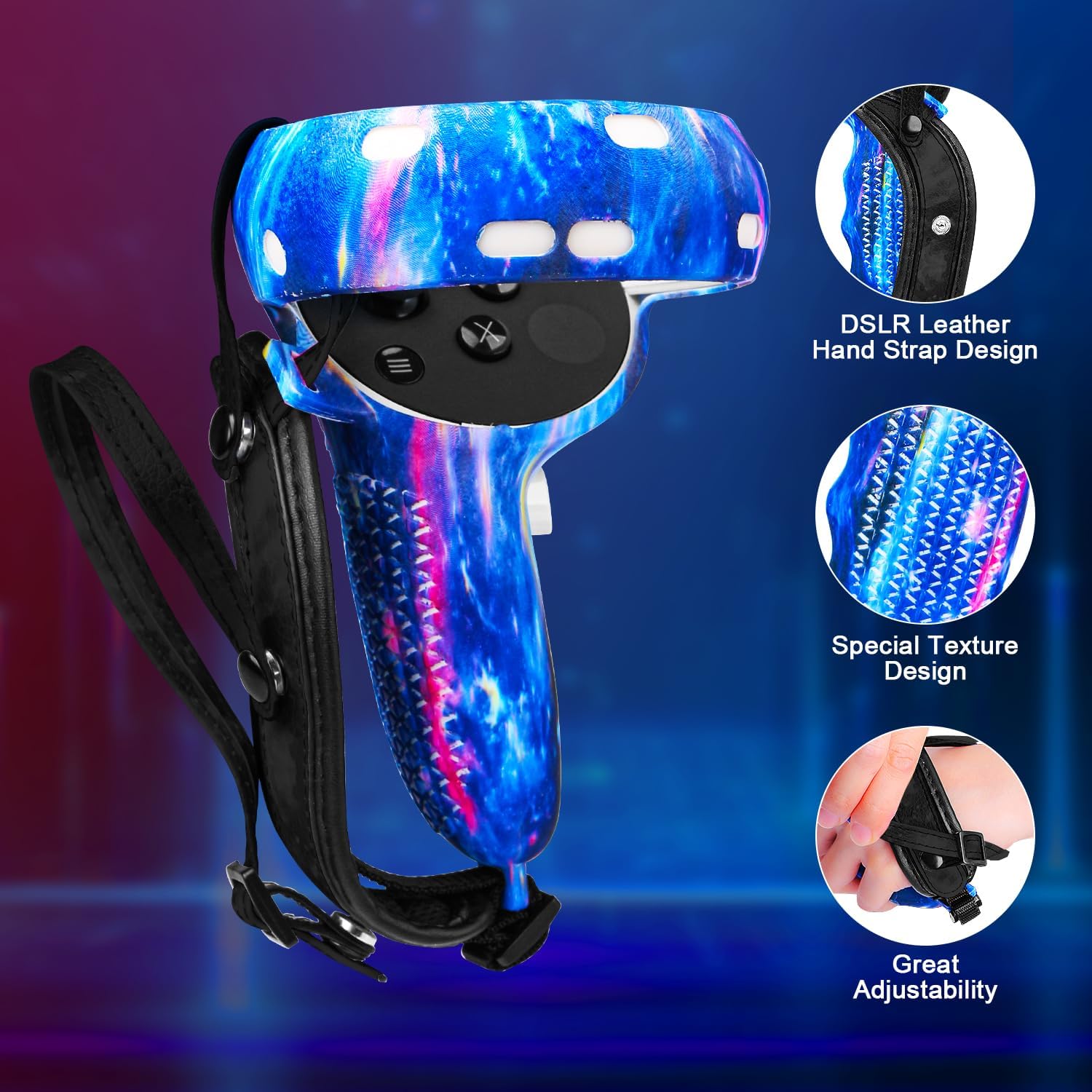 【Cool Silicone VR Protective Case Set】We have 1 pair Touch Controller Grip Cover, 1 x Shell Front Cover, 1x Face Cover, 1 x Lens Protector Cover, 10 x Disposable Eye Cover, 1 x Grip Cover Instruction Manual.We provide a variety of cool patterns for you to choose from, making your gaming more fun!
