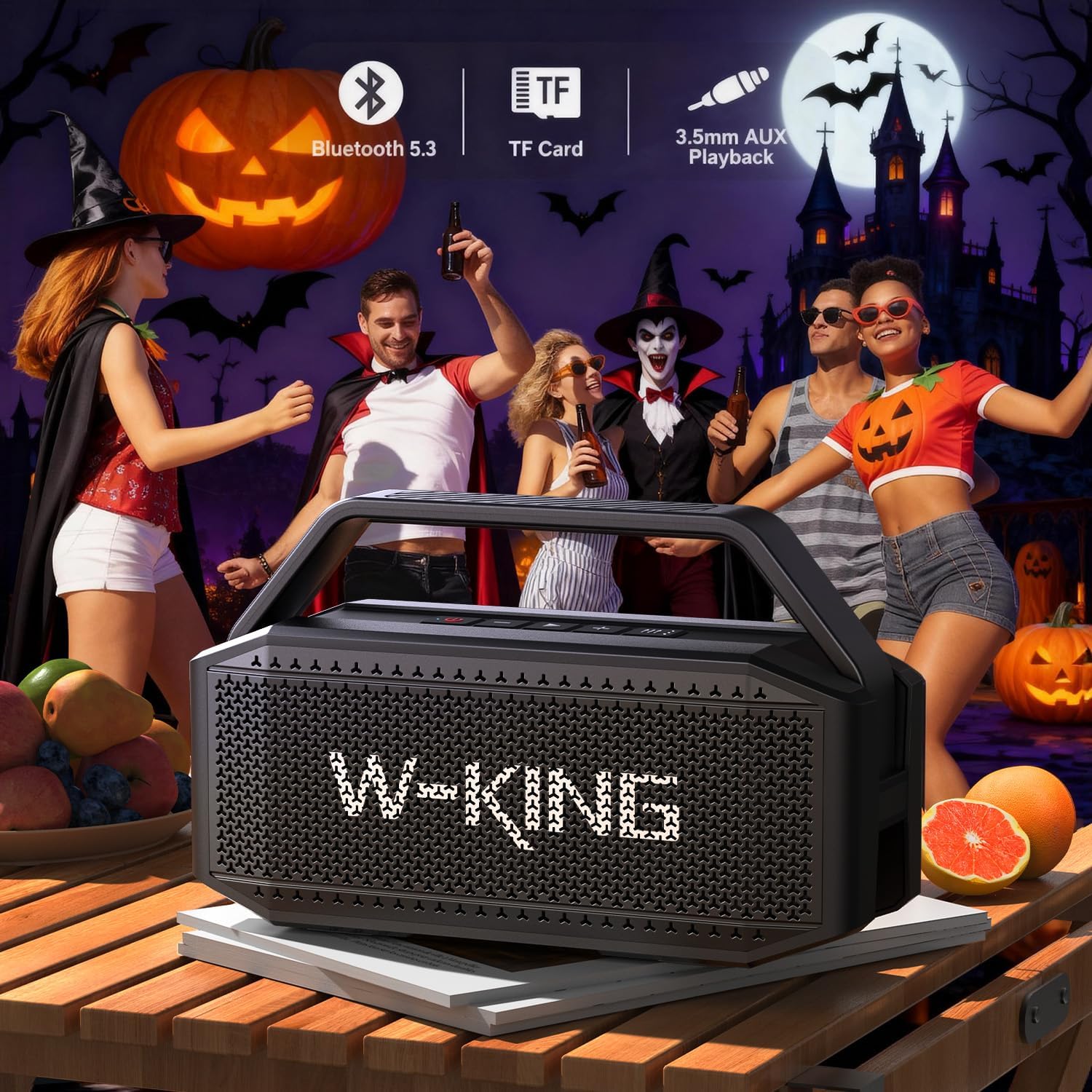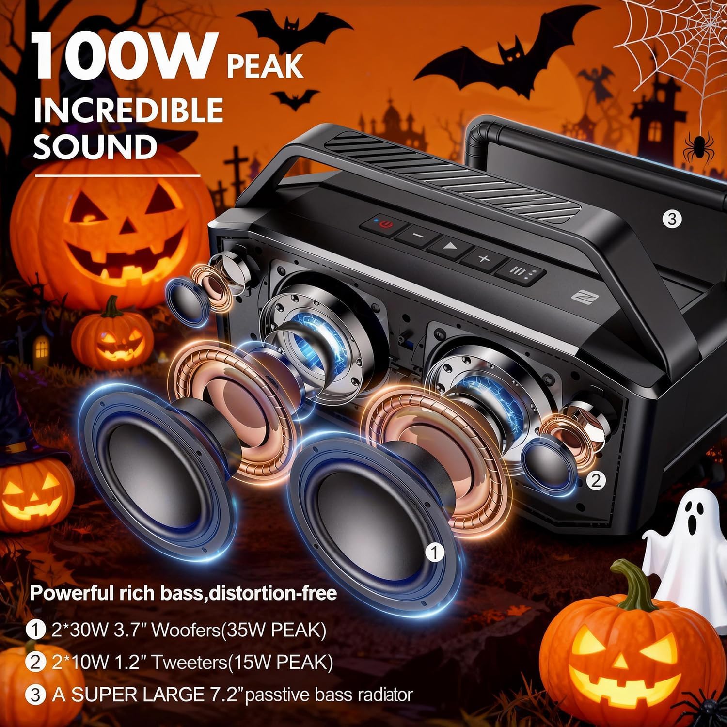 SUPER-SIZED PASSIVE BASS RADIATOR-ENHANCED BASS, DEEPER RESONANCE: The W-KING 60W outdoor Bluetooth speaker features a unique 7.2-inch large passive radiator design on the back, which continuously emits powerful all directions punchy bass energy, ensures balanced and dynamic sound, delivering stunning sound quality. as a result, these large speakers will provide the strongest bass that resounds clearly in any environment. thanks to this design concept, anywhere is a suitable listening position.
