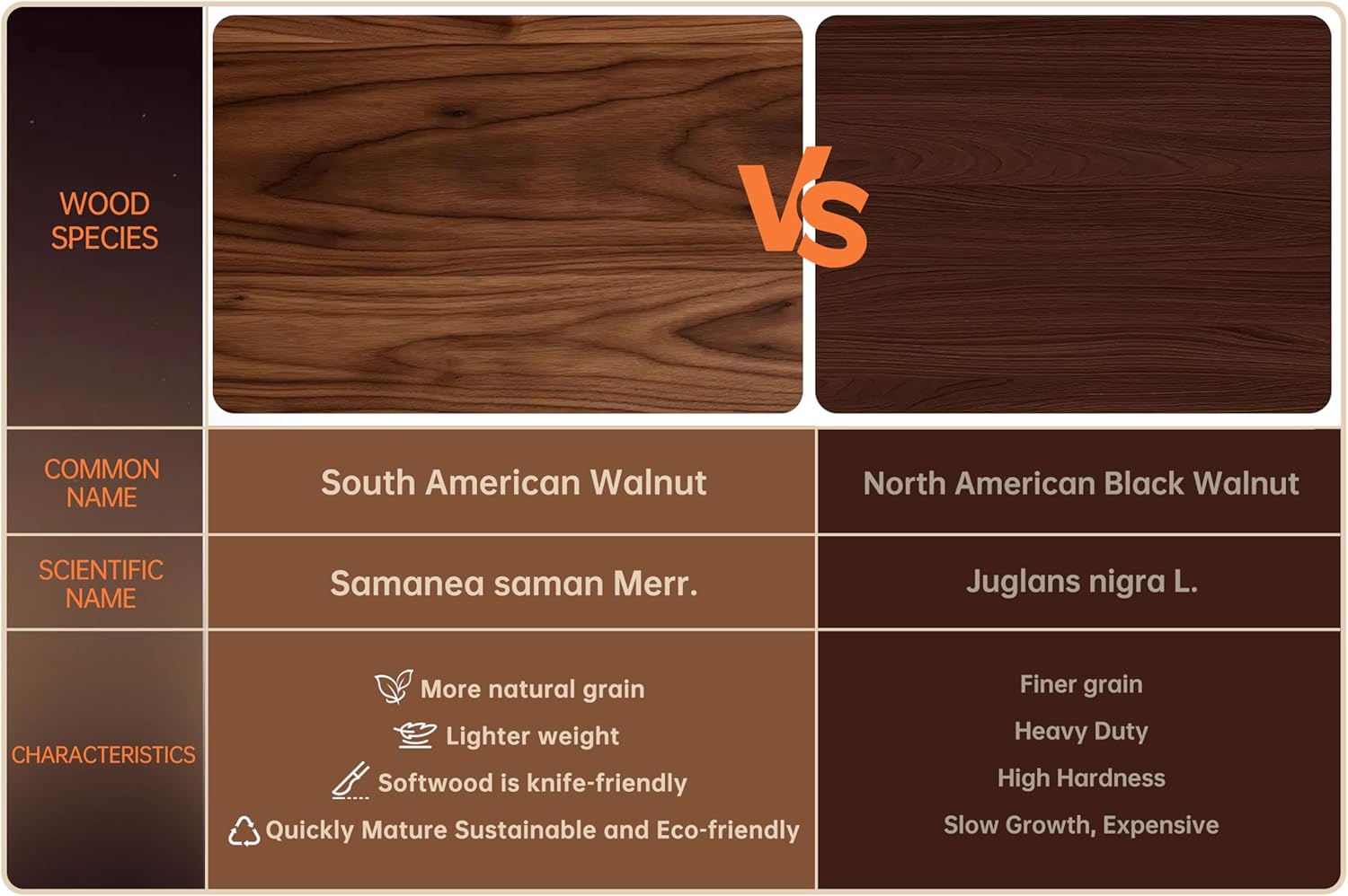 GENTLE ON KNIVES, TOUGH ON TASKS: The 16.5*11.6in cutting board is made of American walnut, which has an ideal hardness to protect the blade while preventing deep cuts. The 0.8-inch thickness ensures that you can complete kitchen preparation tasks such as cutting, chopping, and chopping, suitable for most kitchens and party times.