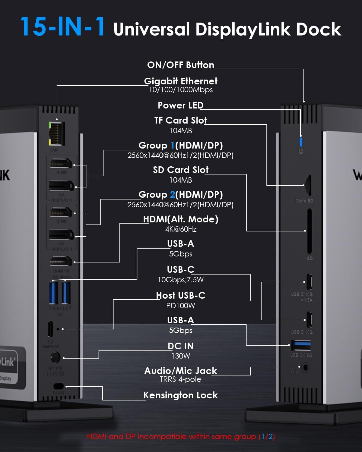 Triple Monitor Docking Station: You can easily connect 3 displays whether you are Mac or Windows! Experience exceptional 4K@60Hz output on the HDMI (Alt. Mode) port for tasks like video editing and gaming. The DisplayLink-6350 chipset enables dual 2K@60Hz displays on the DISPLAY 1/2 (HDMI/DP) ports, perfect for expanding display options on M1/M2/M3 Macs. Great for web browsing and productivity applications; Note: Only one of the HDMI and DP ports can be selected.