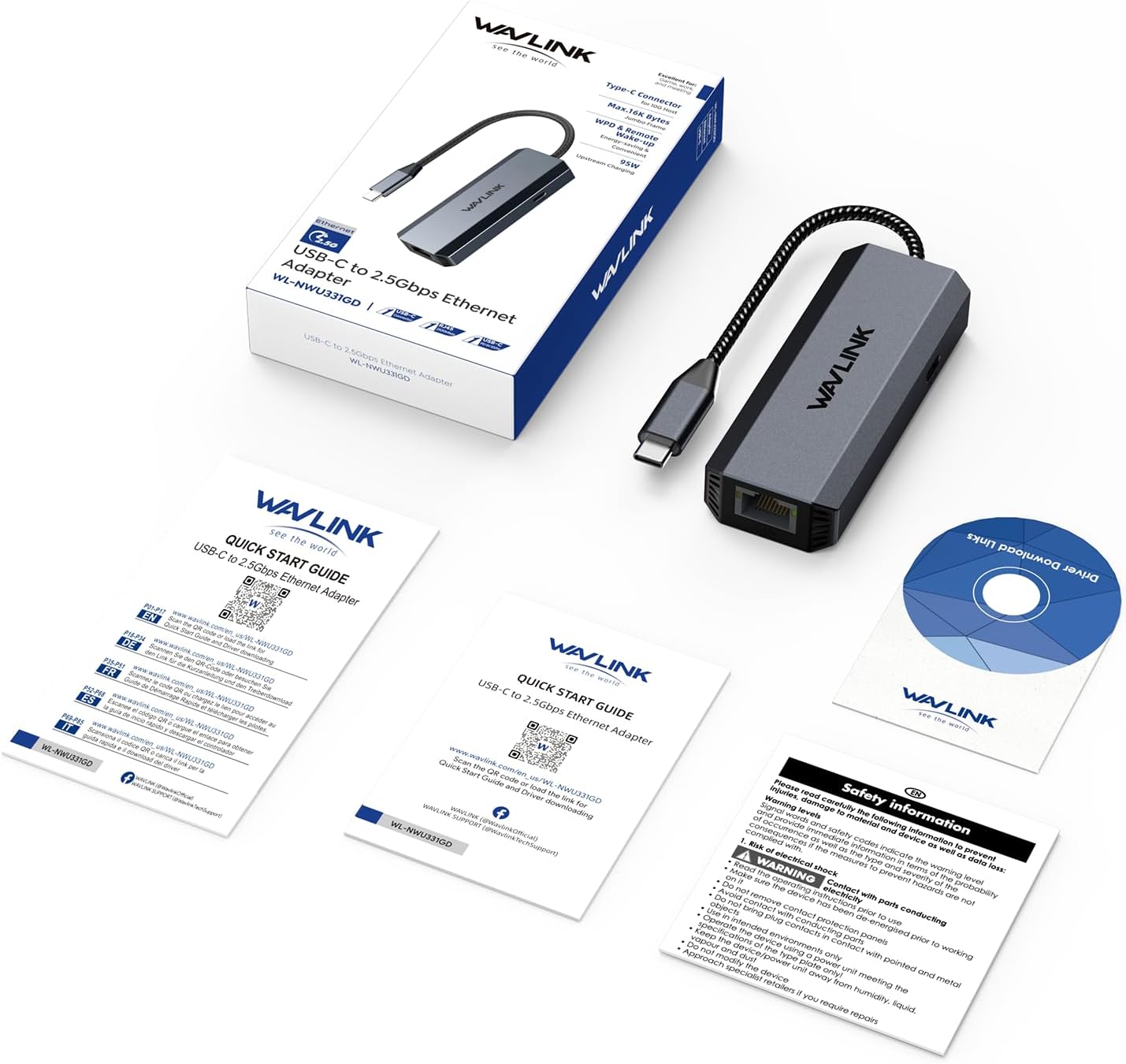 WAVLINK USB C to Ethernet Adapter 2.5 Gbps, USB to 2.5G Ethernet Adapter with 95W Power for Laptop, USB-C to RJ45 Network Converter (Thunderbolt 4/3 Compatible) for Windows, Mac OS, iPad OS and More