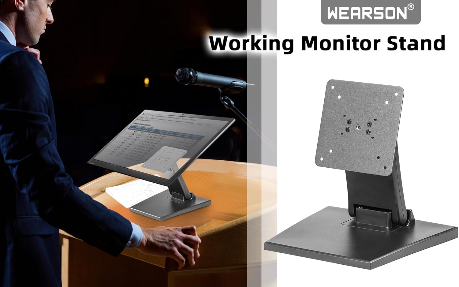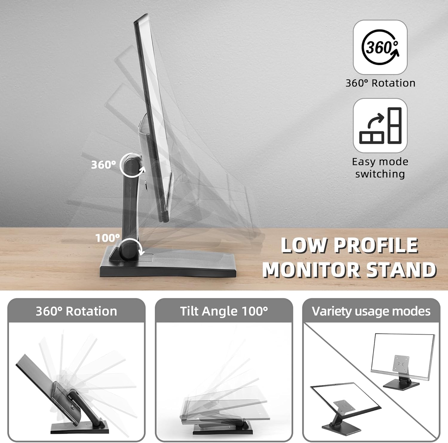 Low profile design: WS-03A2 Monitor Stand features a sleek and compact design, ensuring it takes up minimal space on your desk while providing optimal viewing height for your monitor.
