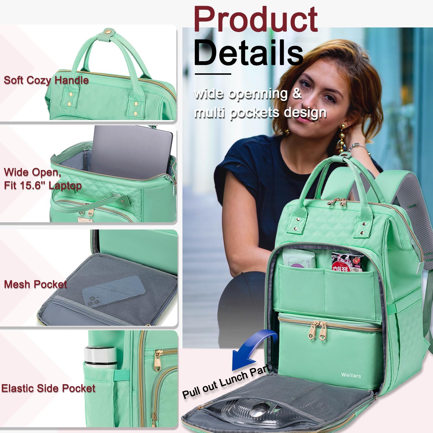 【Independent Lunch Compartment】The Lunch Bag Is Detachable From The Women Laptop Backpack.The Outer Is Made Of Durable Oxford And 6MM EPE Foam, Leakproof Liner Is Dirtproof, It Can Keeps The Food Warm Or Keeps Fresh For 7-9 Hours.Be Good For For Work, Picnics, Beach Trips, Festivals, And City Commute, Let You Enjoy Delicious Fresh Food And You Can Also Use This Lunch Backpack As A Versatile College Backpack
