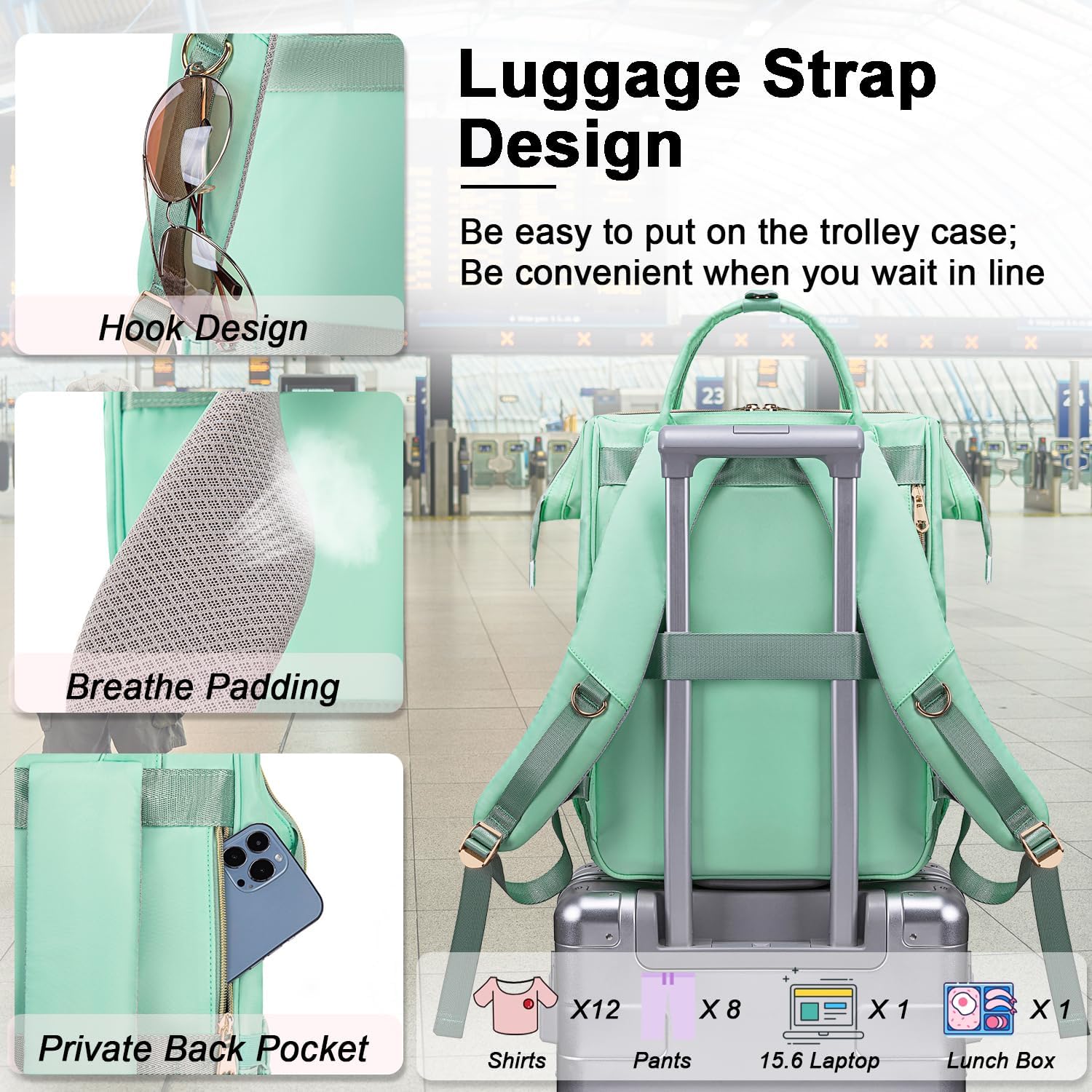【Perfect Travel Backpack For Outdoor】This Travel Backpack For Women Is An Airline Approved Carry-On Backpack.Be Convenient At Checkpoint; Women Backpack Provide The Luggage Strap Which Fits For Trolley Case. Breathable And Soft Padding Back Panel With 2 ‘S’ Curve Breathable Shoulder Straps Release Burden Off Your Shoulders. Durable Handle Make You More Comfortable When Handhold The Backpack Bookbag