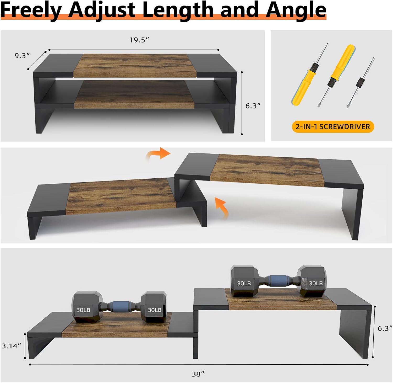 WESTREE Dual Monitor Stand – Riser 2 Shelf Computer with Adjustable Length and Angle, Stands for Monitors, Desktop Organizer PC, Computer, Laptop