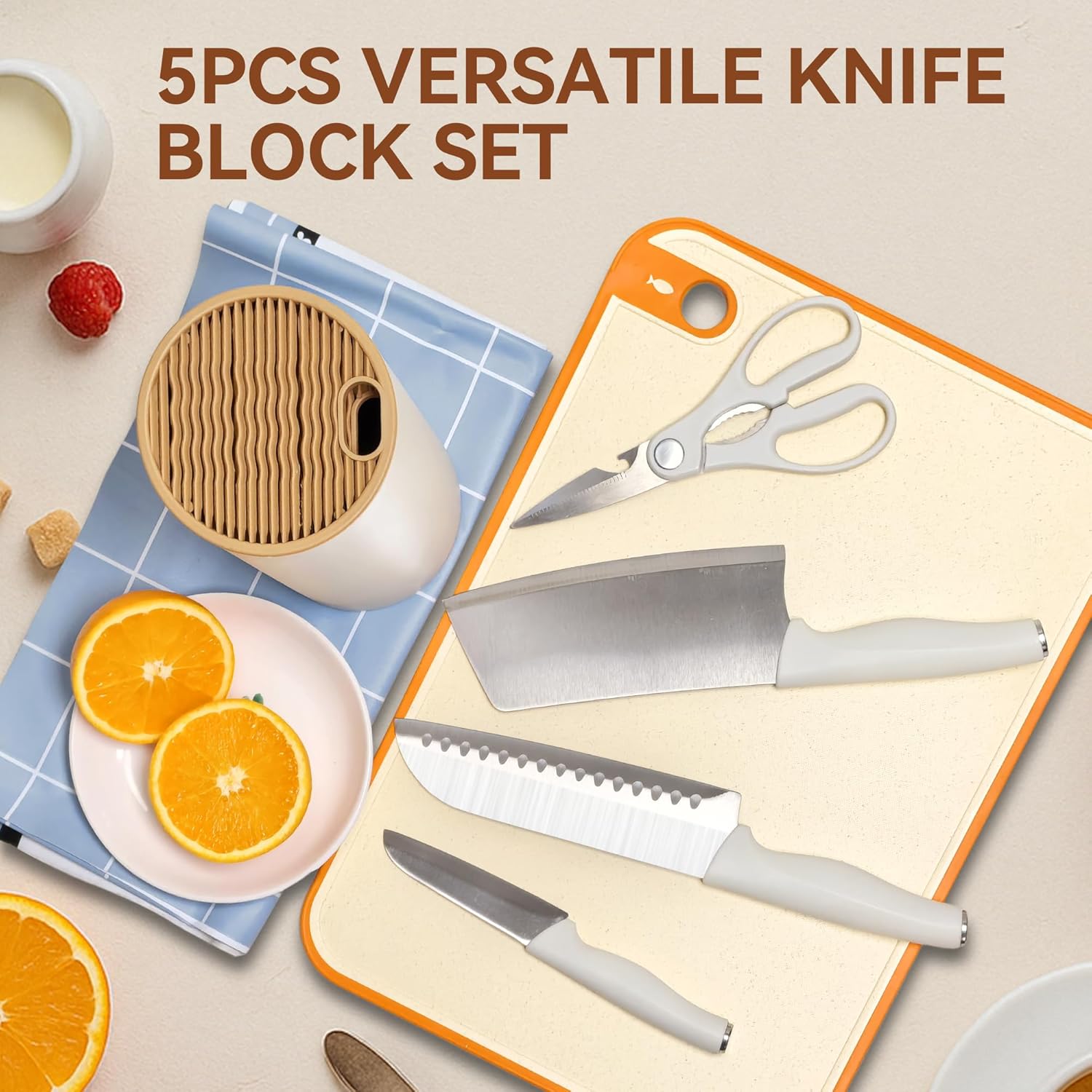 Compact and Efficient Design: The small, sleek white design of the knife set is ideal for kitchens with limited counter space. Despite its compact size, this set delivers premium performance with professional-grade knives and a lightweight, easy-to-use plastic knife holder.