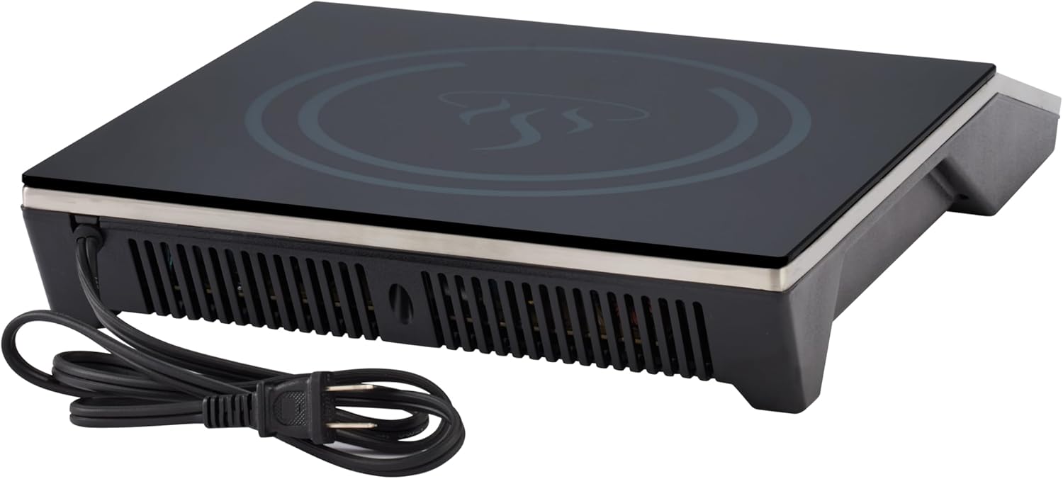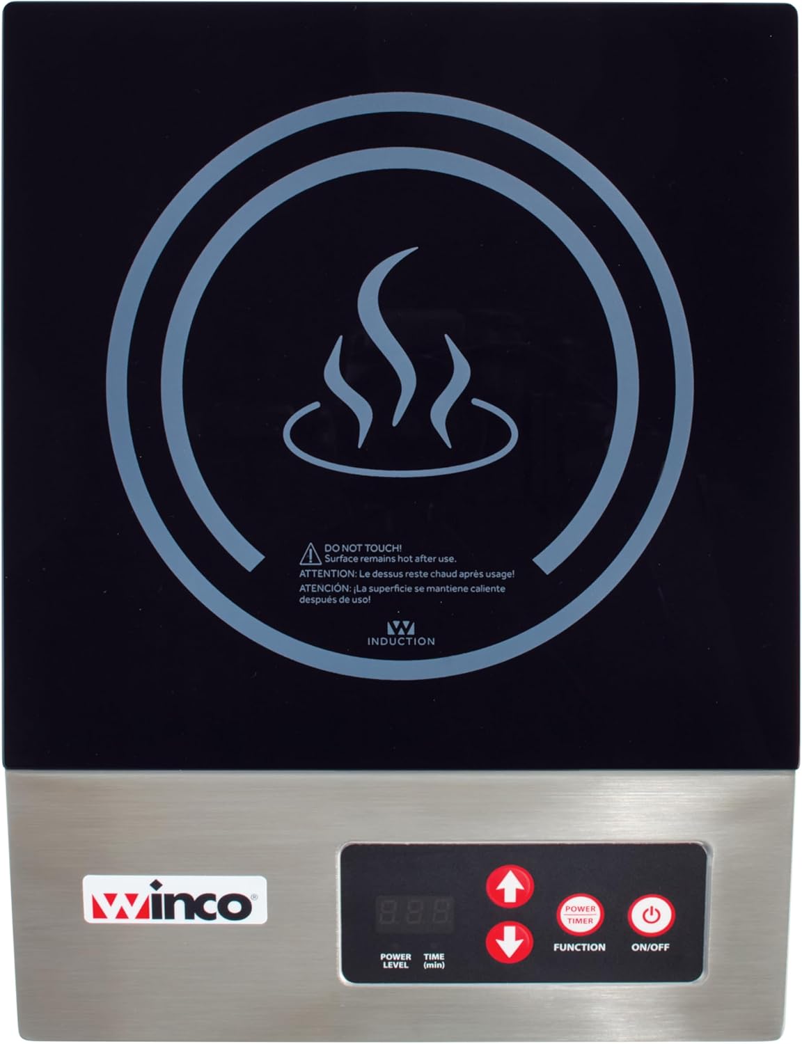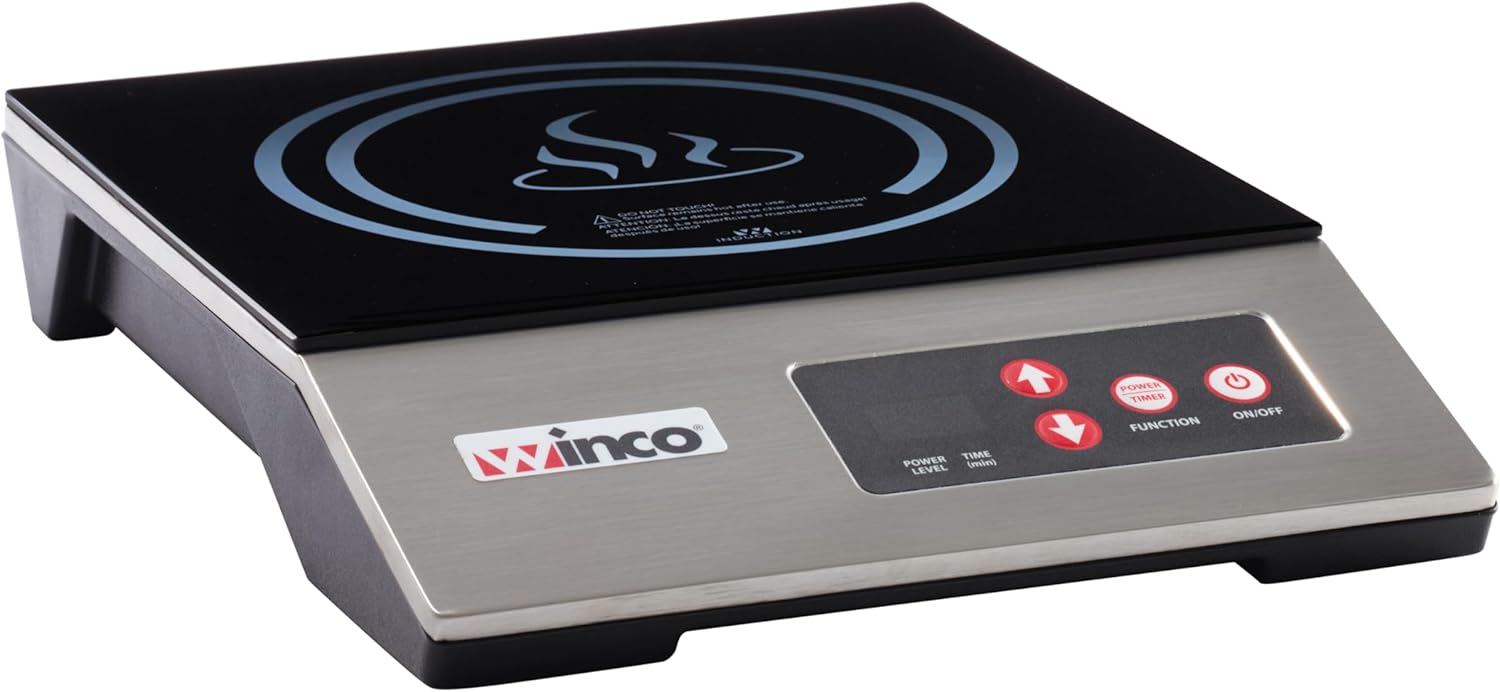 The Winco EIC-400E is a commercial-grade portable induction cooktop burner designed for daily use in commercial-food service environments ideal for catering, tableside cooking, buffet line cooking and more. Powered by an 1800 watt electromagnet, this induction burner is powerful enough to bring water to a rolling boil faster than traditional gas or electric burners. Featuring adjustable heat settings from 1-10, induction cooking technology offers the heat responsiveness of a gas burner with the even heating of an electric burner for a truly superior cooking experience. With induction cooking, only the pan gets hot reducing the risk of accidental burns. A 180-minute timer offers a convenient automatic shutoff. The ceramic glass surface can detect induction compatible pans as small as 4-3/4”-10-1/4”. Dimensions: 11-3/4L” x 15-3/4”W x 2-3/4”H. 120V~60Hz, 1800W, 15A, NEMA 1-15P Plug.
