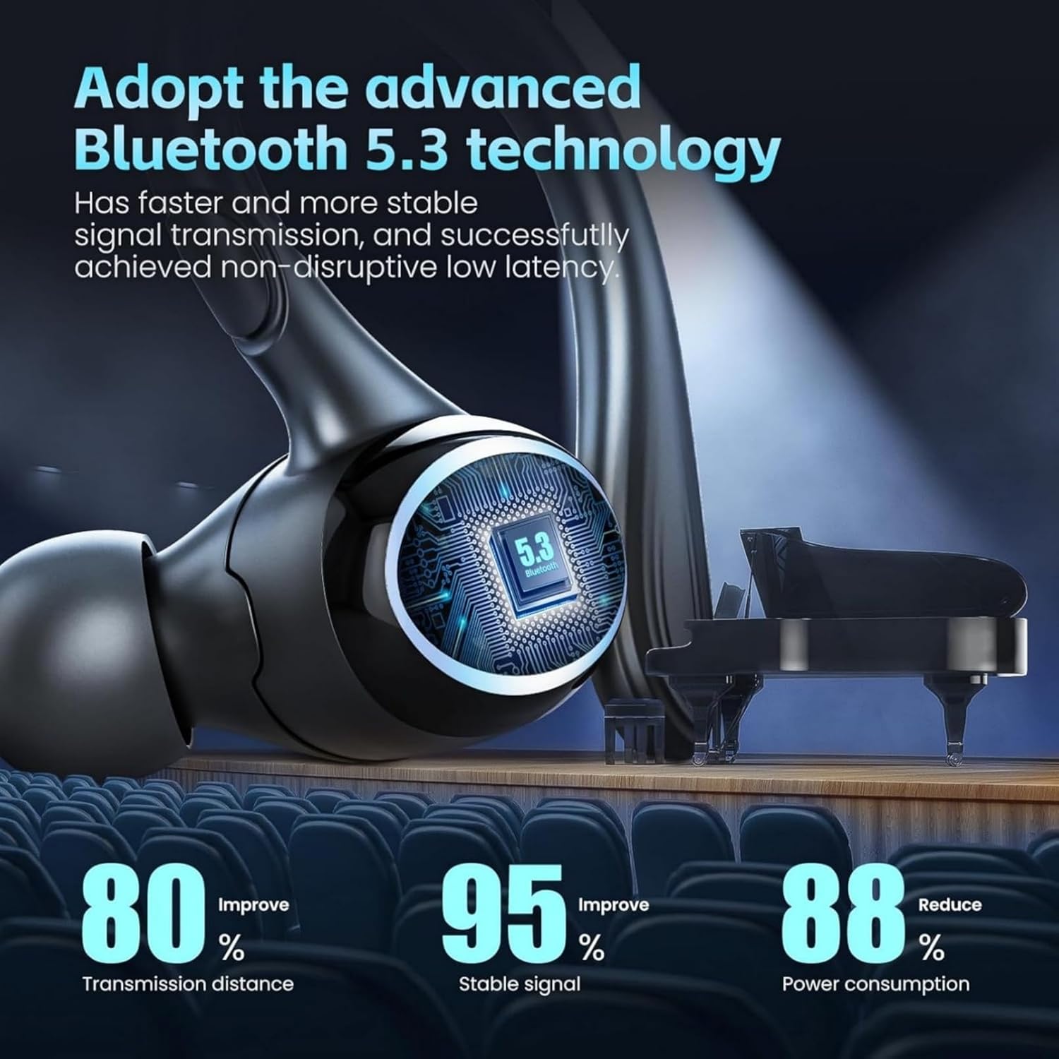 【Bluetooth 5.3 & Instant Pairing】 Equipped with advanced Bluetooth 5.3 technology and dual-channel transmission, the i25 earbuds support HSP, HFP, A2DP, and AVRCP protocols. Compared to Bluetooth 5.2, they offer 150% faster transmission speeds, 50% improved stability, and ultra-low 100ms latency. Easily compatible with iOS, Android, and Windows devices, they provide a hassle-free connection experience.