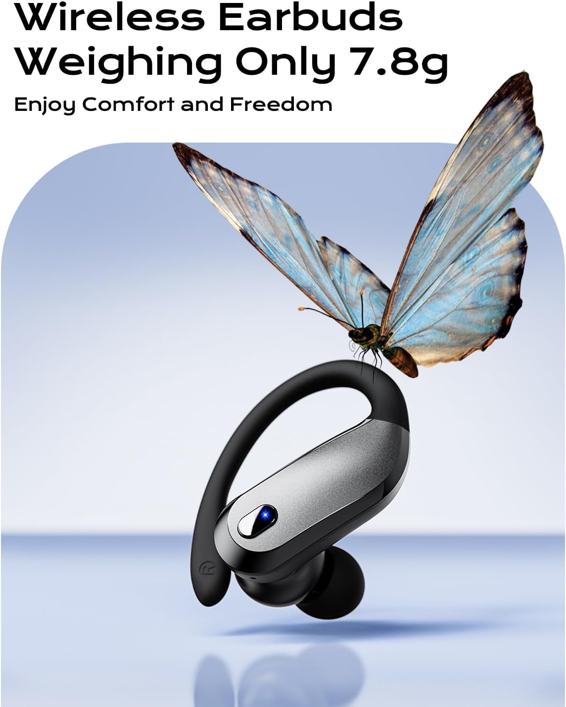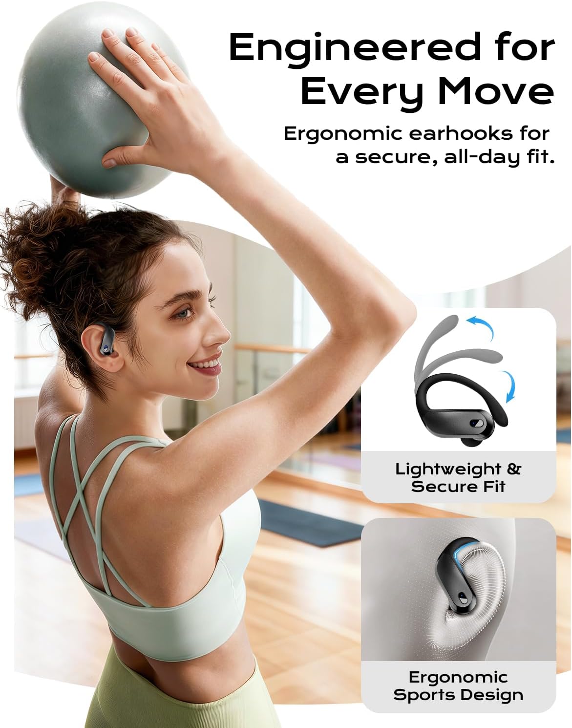 Secure Fit for Intense Workouts:Engineered with flexible earhooks and a lightweight 7.8g design, these Bluetooth sport earbuds stay locked in place through running, gym sessions, and cycling. Sweat-proof comfort that keeps up with your every move.