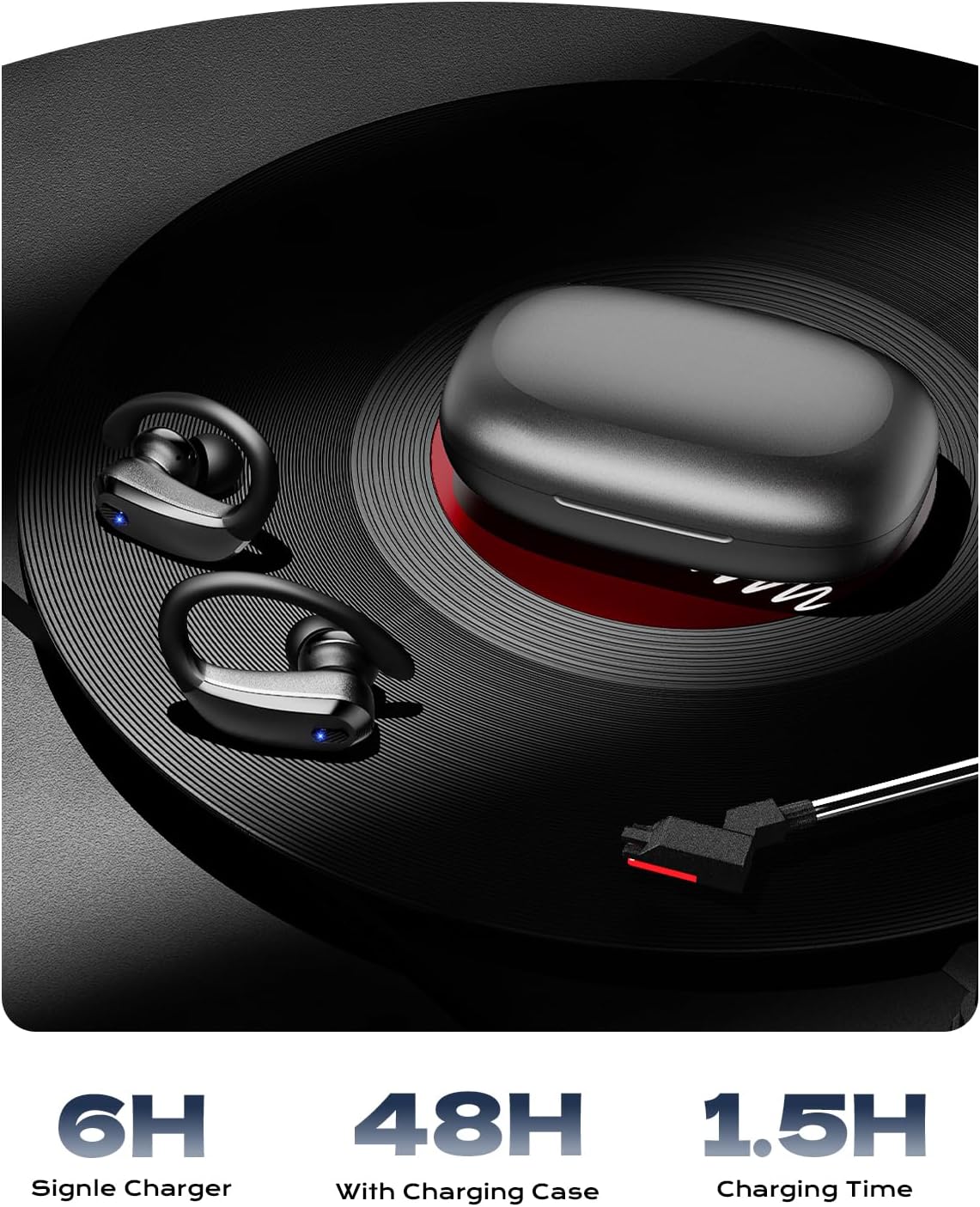 Wireless Earbuds Sport Bluetooth Headphones with 48H Playtime LED Display Case,Bluetooth 5.4 Headphone with Earhooks,Noise Cancelling Mic,Lightweight 7.8g,Ear Buds for Workout Running