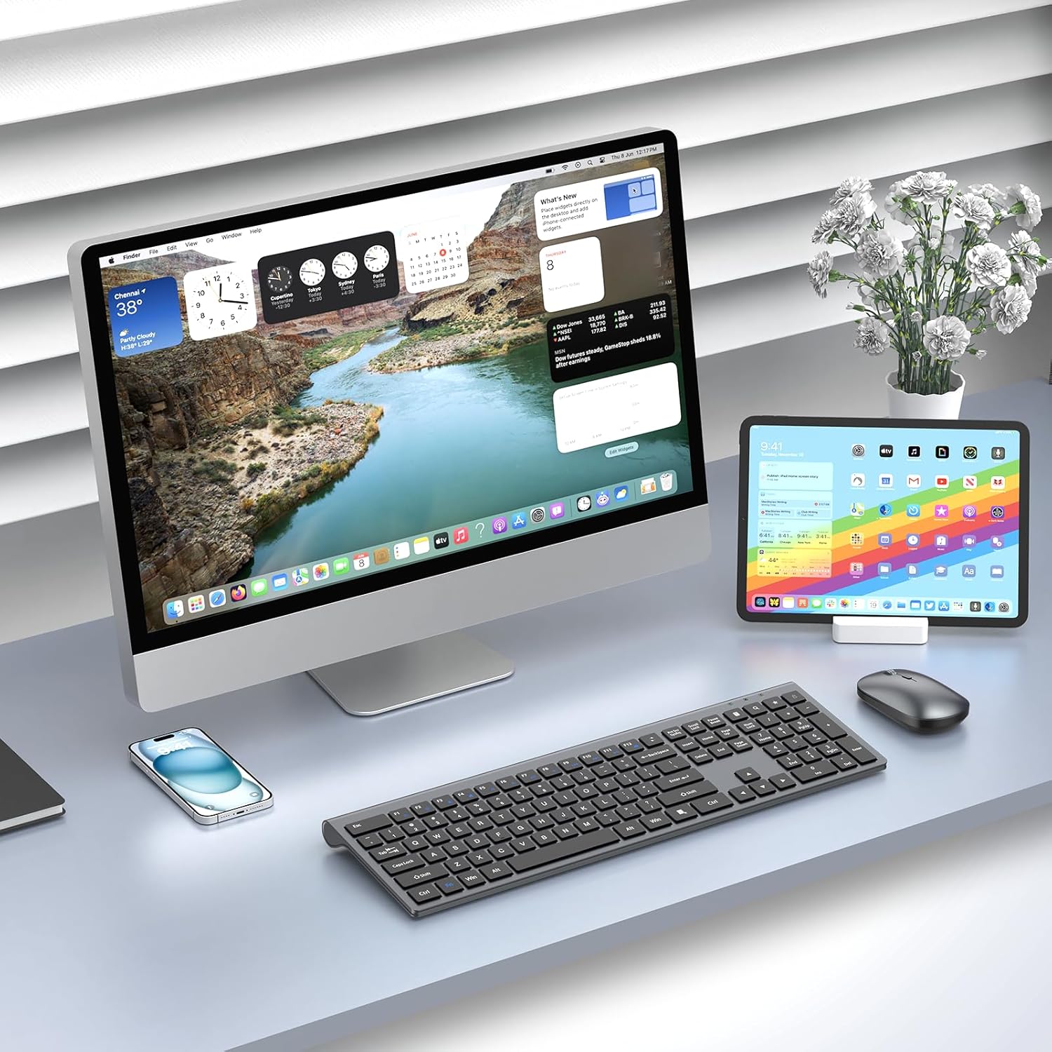 ULTRA SLIM AND SLEEK DESIGN : Ultra-thin design with only 0.23 in for keyboard and 1.14 in for mouse, which does not take up space. This full size keyboard provides everything you need at your fingers, more suitable for offices or working from home. A separate numeric keypad can improve your office efficiency.